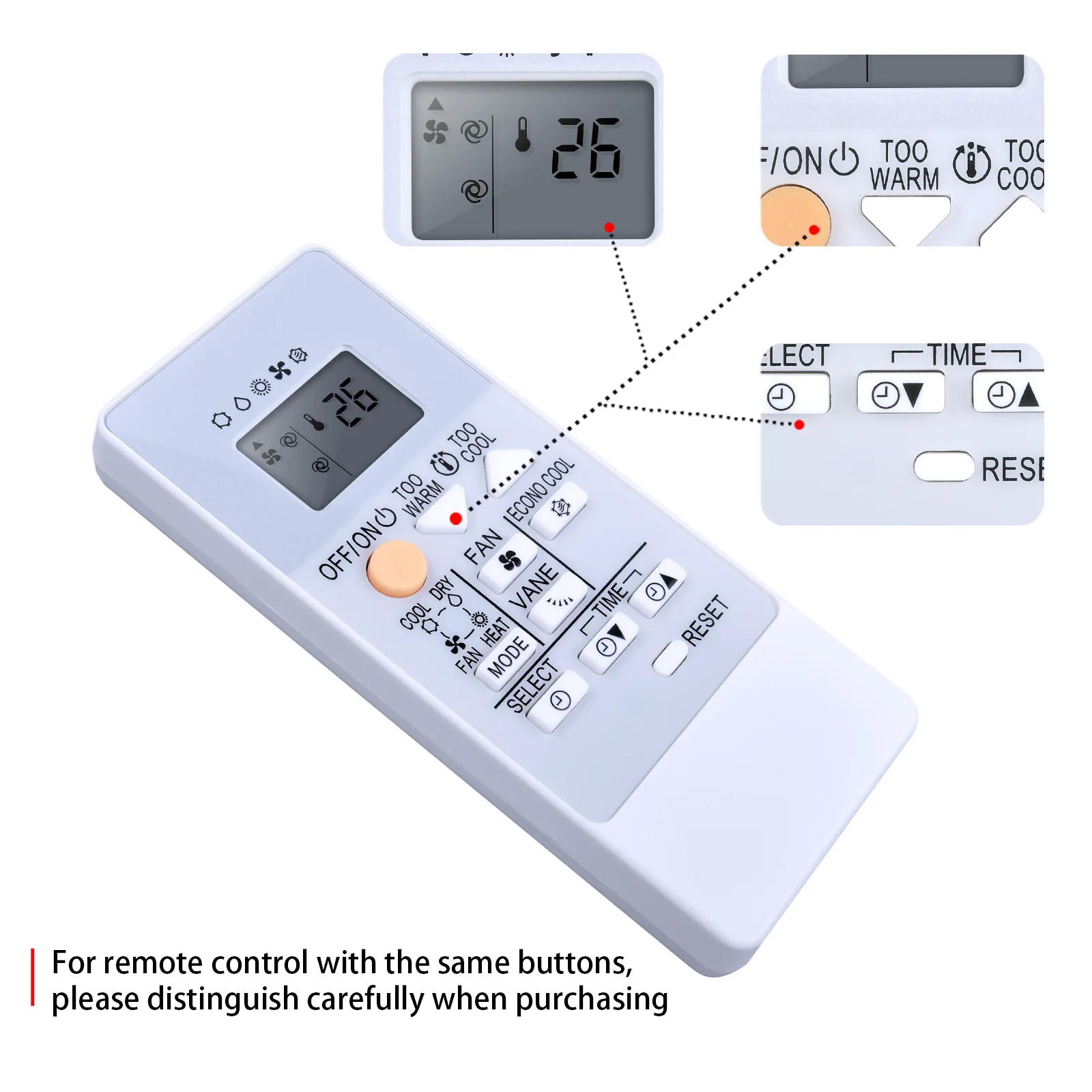 Diversos modelos de mando a distancia.A veces puede haber docenas de formas en forma, y no todas.Si no está seguro del modelo, comuníquese con el servicio de atención al cliente para confirmar que los compradores compran el modelo incorrecto. Nuestra tienda no es responsable.Probamos dos veces antes del envío para asegurarnos de que no haya ningún problema con la calidad del producto en manos de los clientes.No hay motivo para devolver los productos dentro de los 30 días,