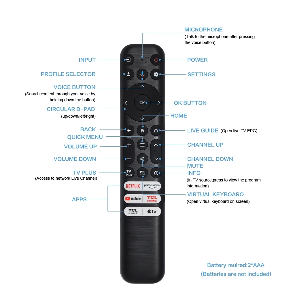 Nuevo Control remoto por voz RC813 FMB1 Adecuado para TCL Q550G Q650G Q670G Q750G S370G LED UHD QLED Smart TVs Descripción del producto