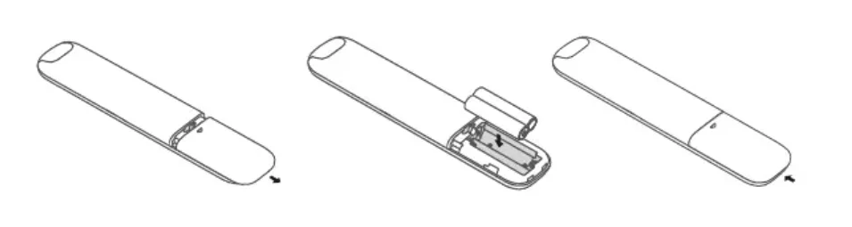 - Instalación de baterías 1.Empuje para abrir la tapa trasera como se ilustra. 2.Inserte dos pilas AAA según las polaridades marcadas en la caja de la batería. 3. Reemplace la tapa trasera como se ilustra.