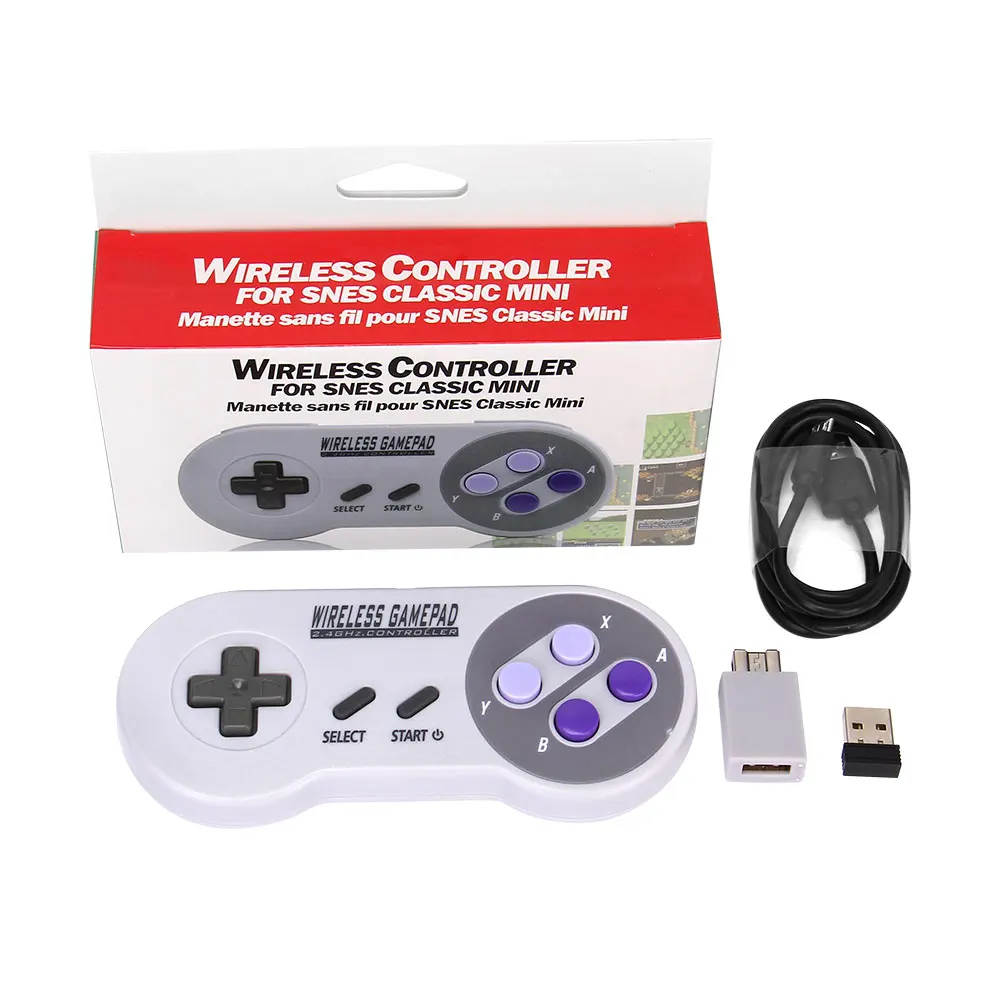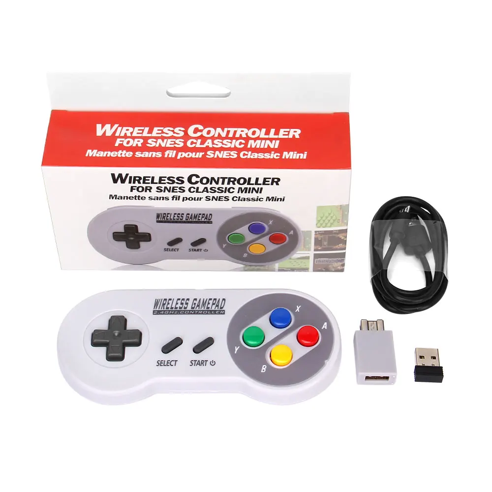 Comprar Nuevo controlador de mando inalámbrico de 2,4 GHz para Super Nintedn NES y SNES Classic Mini controlador de consola inalámbrico Joystick Gamepads