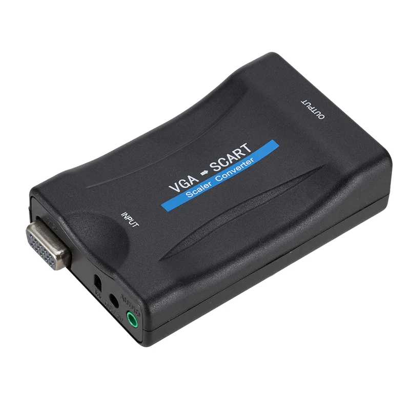 ¡Nuevo! 1080P VGA a SCART Video Audio Converter Adapter Digital Video Audio TV Signal Conversor con cables de alimentación de control remoto