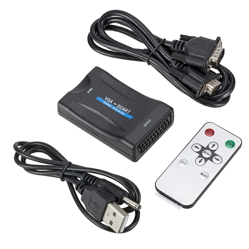 Comprar ¡Nuevo! Convertidor de Audio y vídeo Digital VGA a SCART, Cables de alimentación de TV con convertidor de señal de Control remoto, 1080P