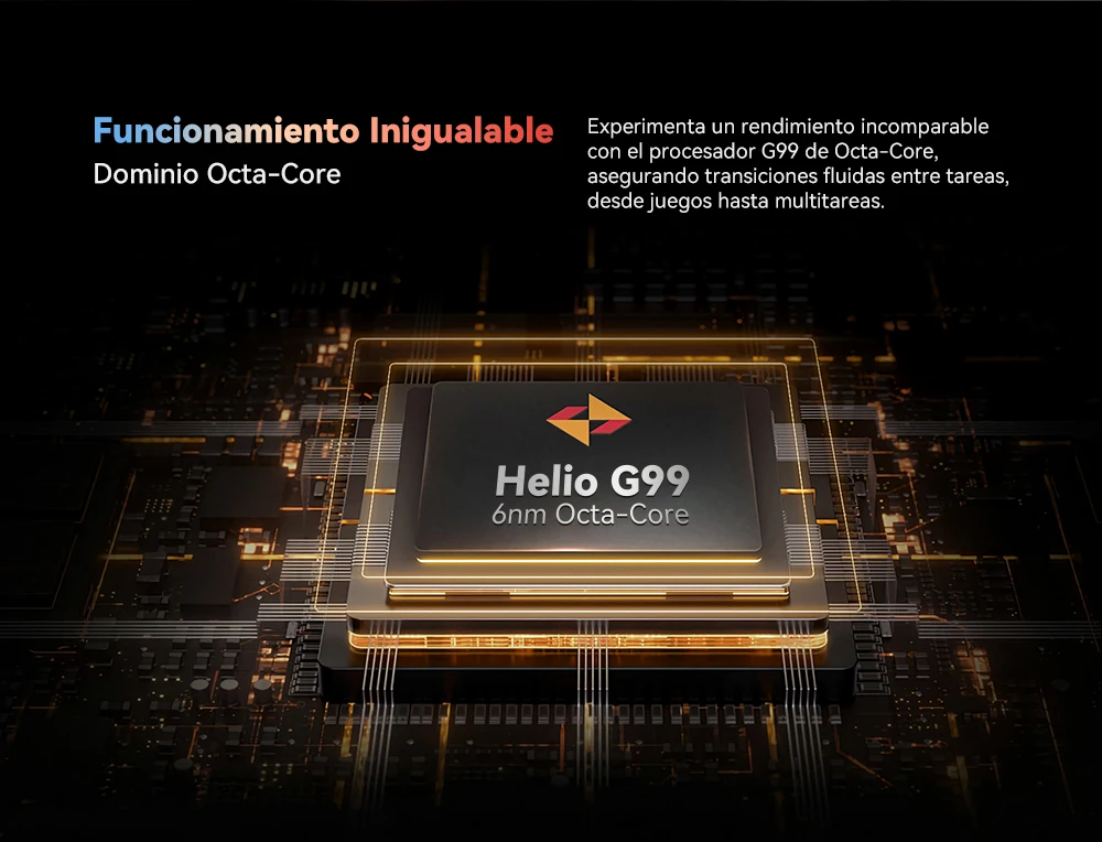 CPU: Helio G99, Octa-Core,6nm 2 * A76 2,2 GHz + 6 * A55 2,0 GHz