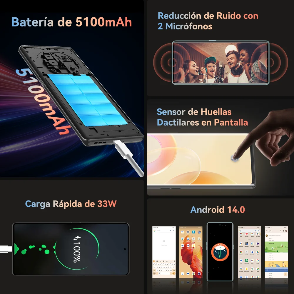 Característica: NFC, Huella dactilar, Bluetooth 5,2, Red Dual 4G, OTG, proximidad, acelerómetro, magnético, giroscopio
