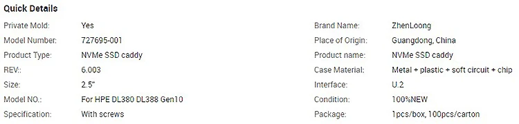 Comprar Nuevo disco duro NVMe SSD Caddy de 727695 pulgadas para HPE ProLiant DL380 DL388 Gen10 G10, soporte de bandeja de servidor, 2,5-001