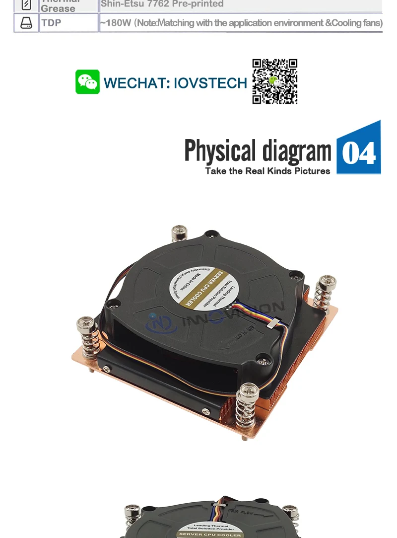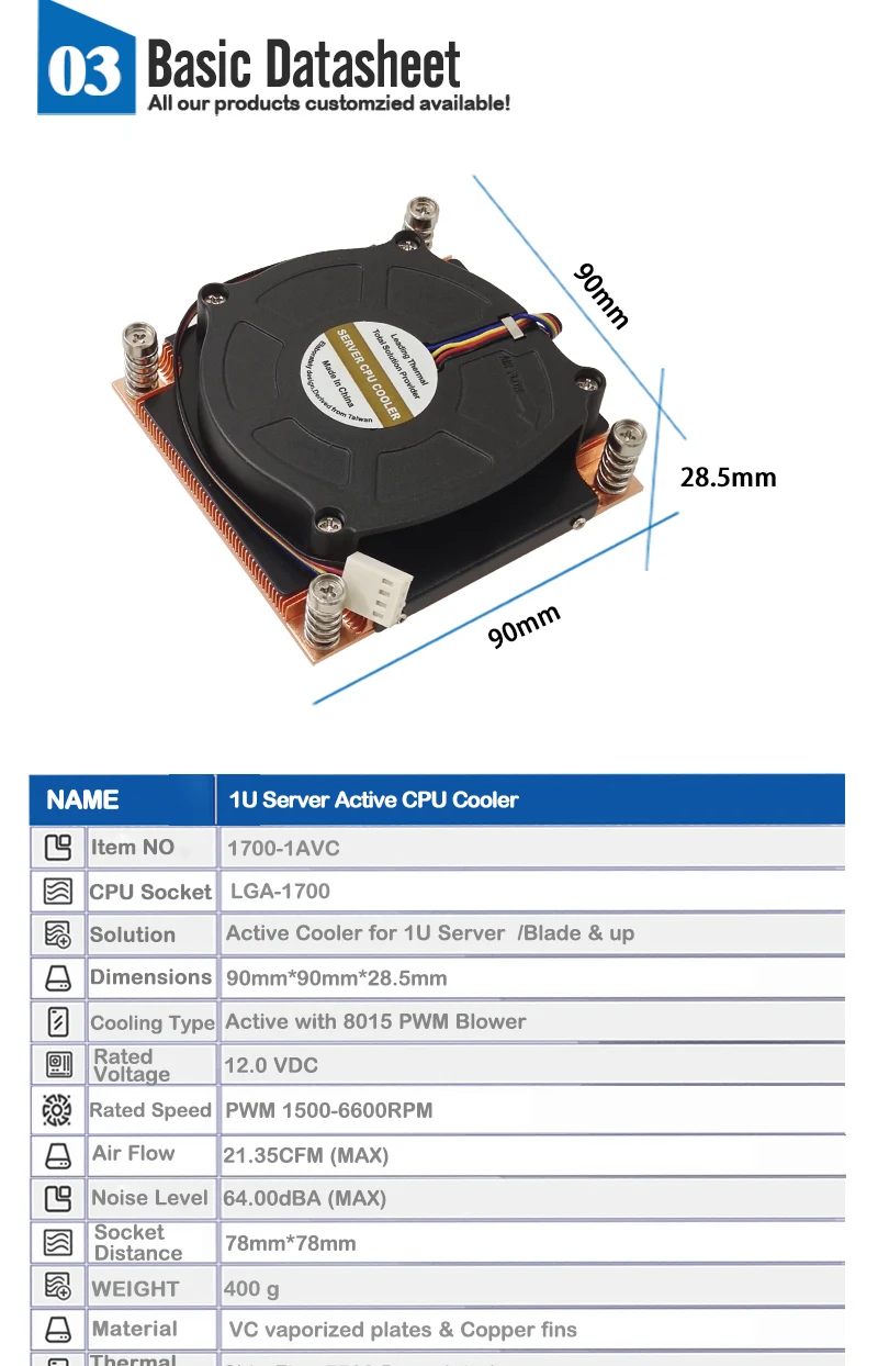 17001AVC admite potencia de CPU de hasta 180 vatios de disipación de calor. Recomendado para procesador Intel Alder Lake S, ventilador con enchufe LGA 1700, 80 x 80 x 25 mm con función PWM, placas vaporizadas VC y aletas de cobre, enfriador activo de CPU para servidor 1U