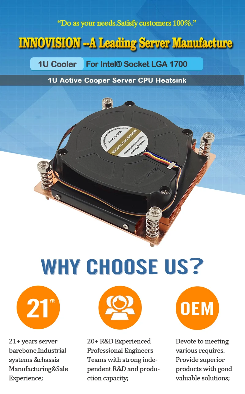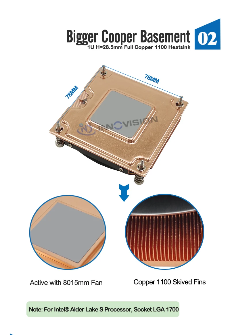 Nuevo Enfriador de CPU activo 1U para Intel LGA1700 78x78MM con espacio entre orificios 180W TDP