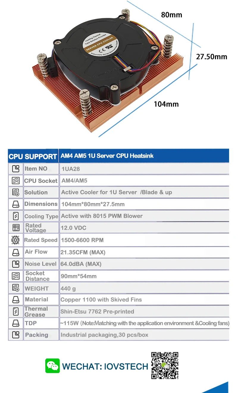 Nuevo disipador térmico de alta calidad para servidor enfriador de cpu 1U AM4 AM5 con ventilador 8015 para AMD Ryzen TDP hasta 115w, con kit trasero AM4-1UA28
