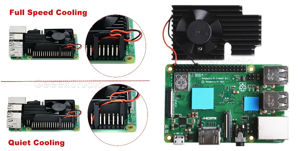 Kit de ventilador de refrigeración extrema versión 3510 para Raspberry Pi 3B/3B +/4B es un nuevo sistema de refrigeración para su Raspberry Pi 3B/3B +/4B.