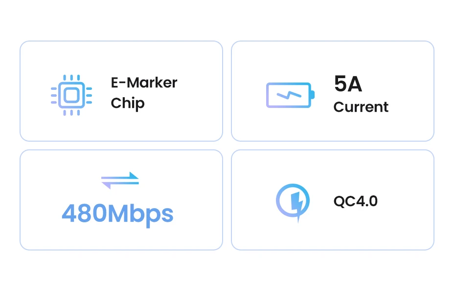 Chip E-marker integrado, garantiza una carga rápida de 5A