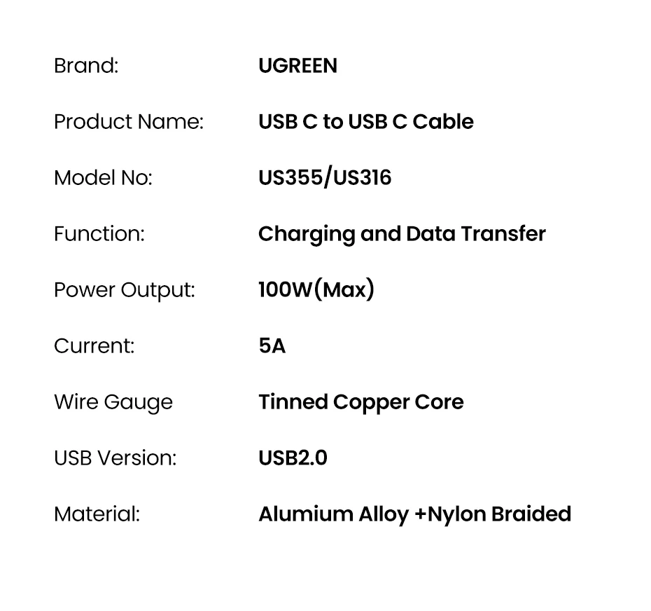 Comprar 【Nuevo en venta】UGREEN Cable USB de 100W tipo C a tipo C para MacBook Samsung PD100W USB tipo C Cable de carga rápida QC4.0 USB C