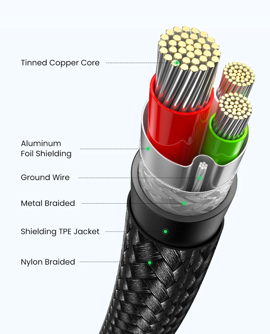 El núcleo de cobre estañado en negrita 30/18 AWG proporciona una transmisión estable