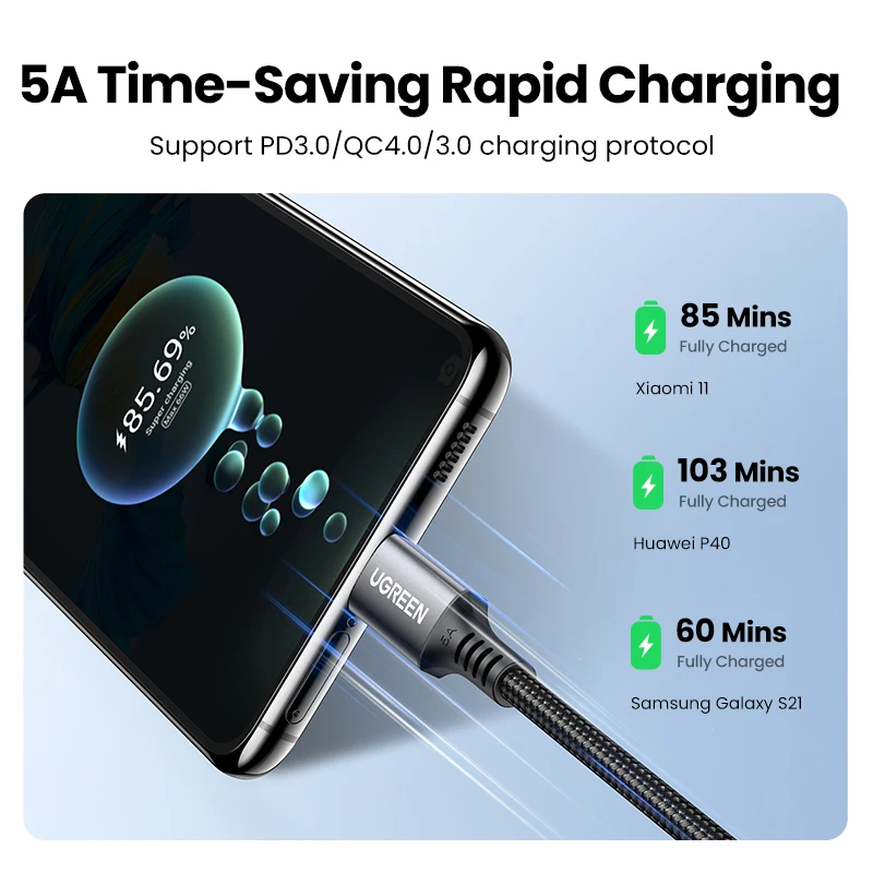 Nota: Los datos del tiempo de carga se obtienen mediante pruebas de laboratorio UGREEN con