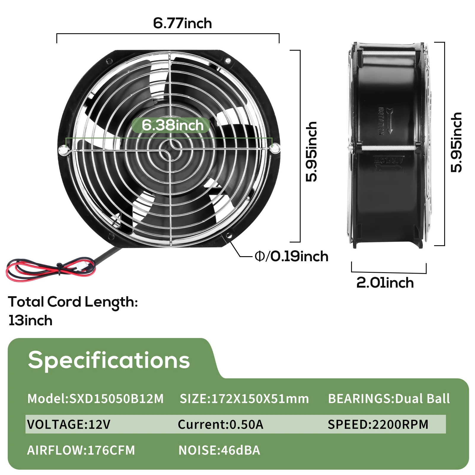 El 172mm x 51mm es adecuado para el ventilador de refrigeración Industrial, lo que puede reducir eficazmente el daño a altas temperaturas del equipo.