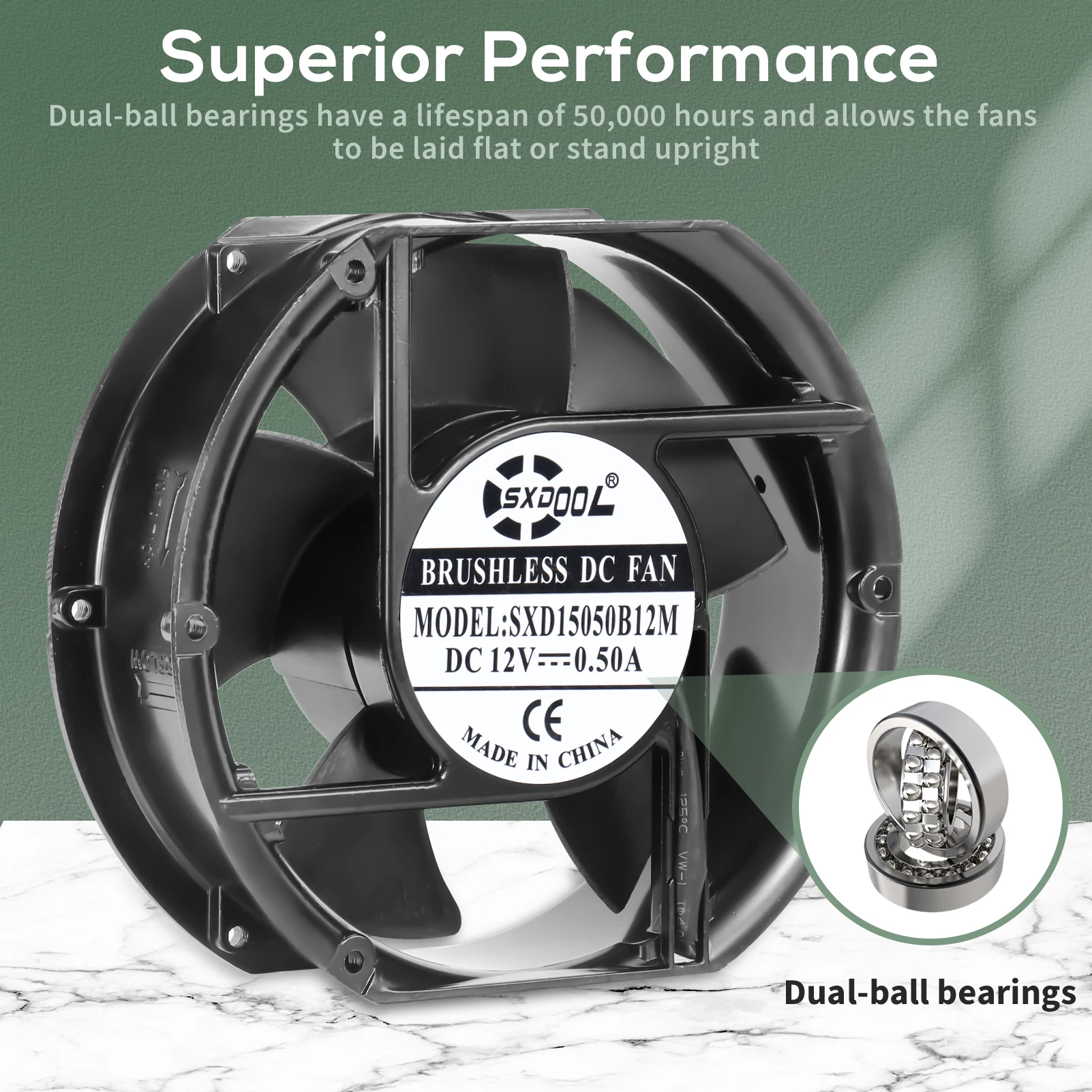 Comprar Nuevo flujo de aire grande RPM armarios industriales 172mm 17cm ventilador de refrigeración de la Caja, SXDOOL SXD15050B12M 172X150X51mm DC 12V 176CFM bola Dual