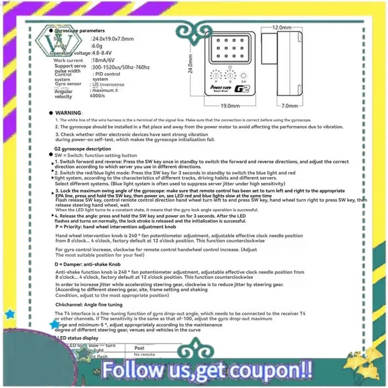 Nuevo Giroscopio de coche de deriva asistido de doble sistema G2, alto voltaje de 8,4 V, adecuado para 1/10 RC, caja de aluminio de coche de deriva remota B
