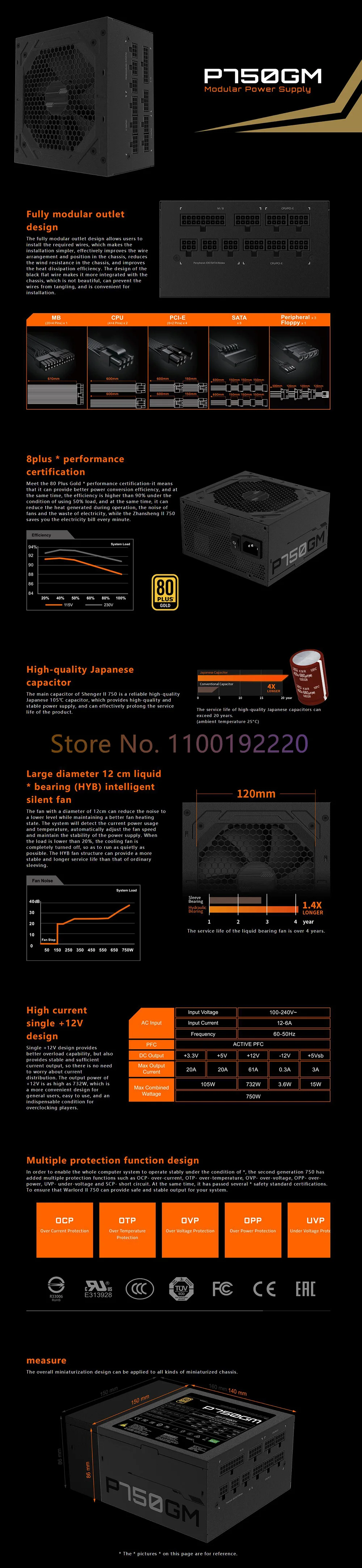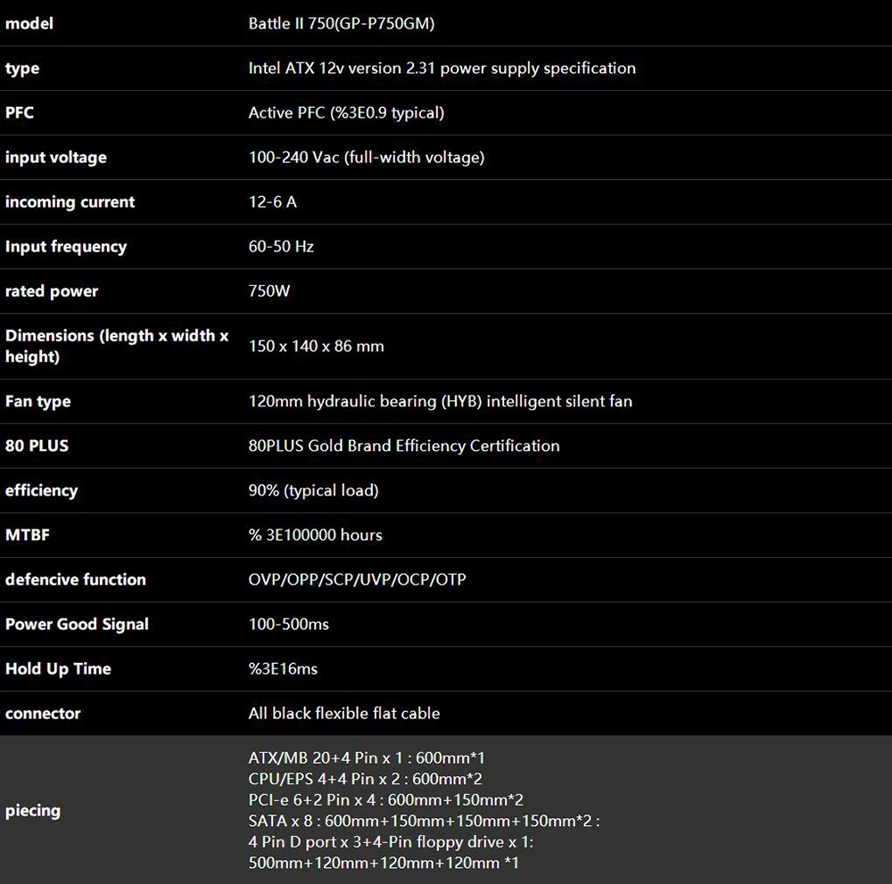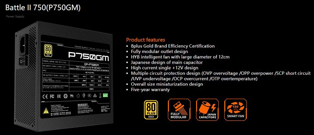 GP-P750GM P750GM 750W 80PLUS Gold ATX 12V Power Supply High Quality Fast Ship
