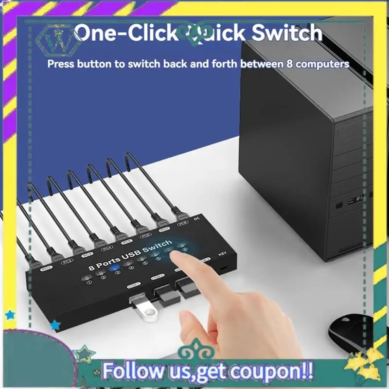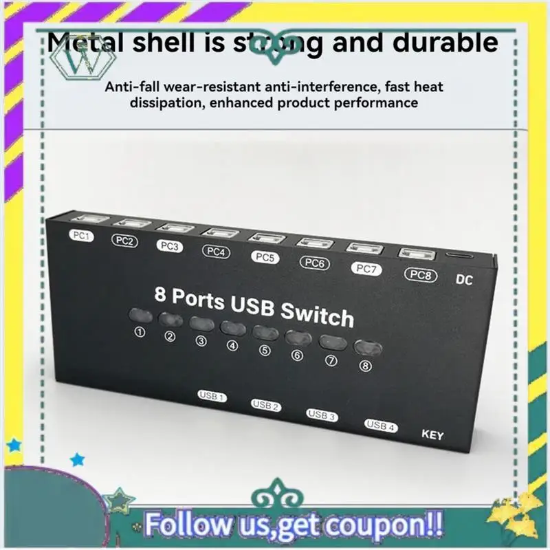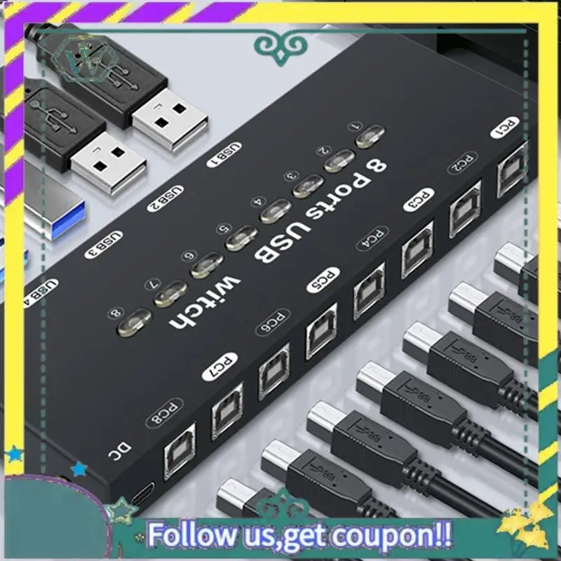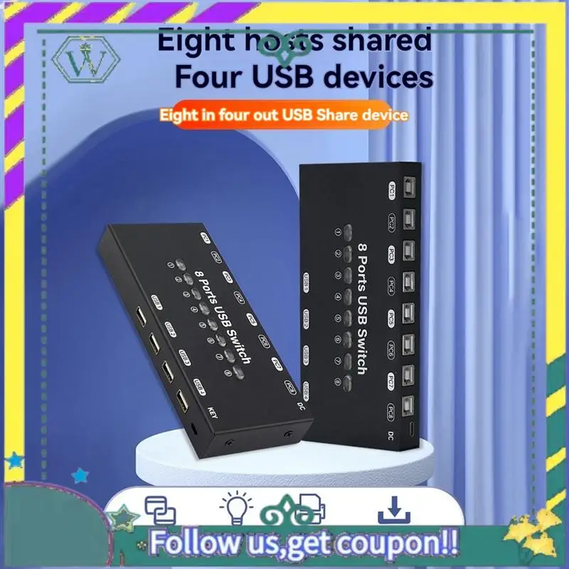 Nuevo Conmutador KVM USB 8 en 4 salidas conmutador KVM USB para ordenador Windows10 PC teclado ratón impresora controlador de compartir