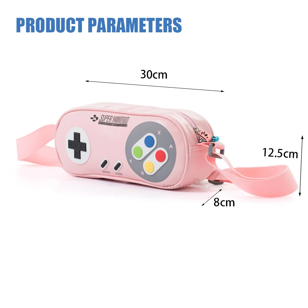 Nuevo para Switch OLED almacenamiento bolso de hombro portátil Retro de SNES protección funda con cremallera para accesorios de consola Nintendo Switch/LiteCaracterísticas:1. Diseño multifunción para la consola de juegos Nintendo Switch OLED/Switch/Switch Lite.2.Proteja y almacene perfectamente su consola, cable de carga, adaptador de CA, auriculares, etc.EXCELENTE PROTECCIÓN:Fabricado con protección de alta calidad para Nintendo Switch OLED con sensación de tacto suave.Descripción:1. Esta bolsa es la más nueva y de primera calidad.Hay bolsas de material de alta calidad.2. Mano de obra meticulosa, aspecto exquisito temático del controlador de juego SNES clásico retro.3. Está hecho de material de alta calidad y respetuoso con el medio ambiente con gran capacidad.4. Protege la consola Switch oled y los controladores del polvo, rayones, desgastes, golpes, impactos y daños.5. Gran espacio de almacenamiento, la bolsa puede almacenar la consola Switch oled y los controladores JoyCons, y el bolsillo puede almacenar el cable de carga, las tarjetas de juego y otros pequeños accesorios de juego.El paquete incluye:1 x bolsa de transporteNota: