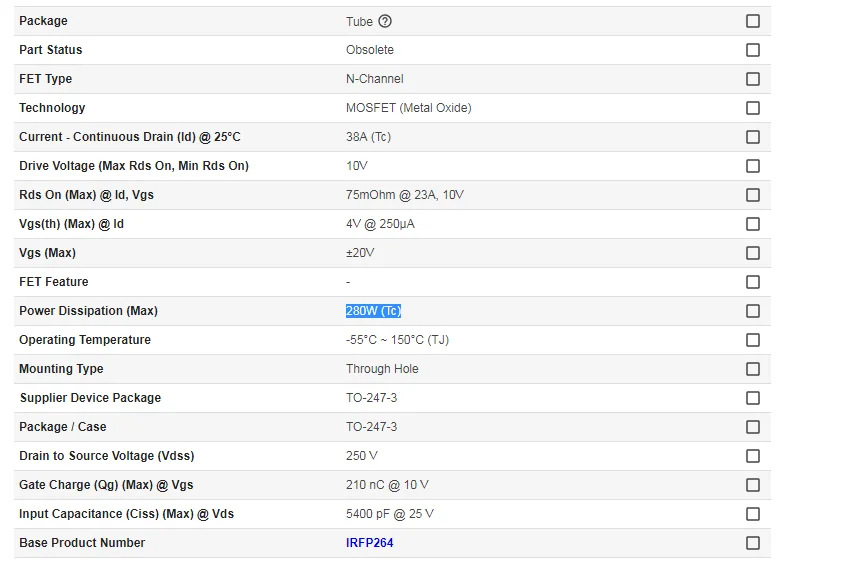 1 x IRFP264 (1/2 ")