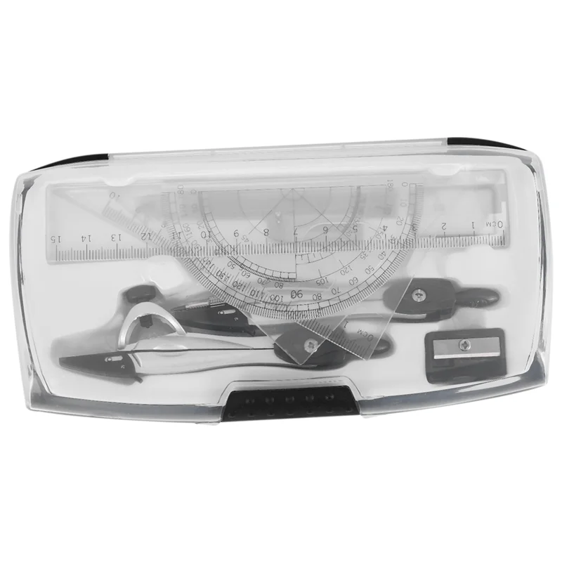 New Geometry Compass Set 10Pcs School Maths Protractor Set Rulers For Student Maths And Engineering In Carry Case Rich 10pcs Geometry School Math Set as gift for homeschooling maths and for students to start maths learning and drawing