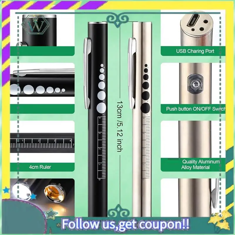 NUEVO juego de herramientas de enfermera, bolígrafo con luz recargable con dos fuentes de luz LED y pupilómetro, 6 pulgadas con tijeras y resaltador durab