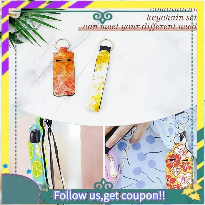 El llavero de lápiz labial sublimado brinda protección para su lápiz labial, el llavero de pulsera mantiene todas sus llaves juntas, el portabotellas le facilita llevar desinfectante para manos de viaje, champú, etc.
