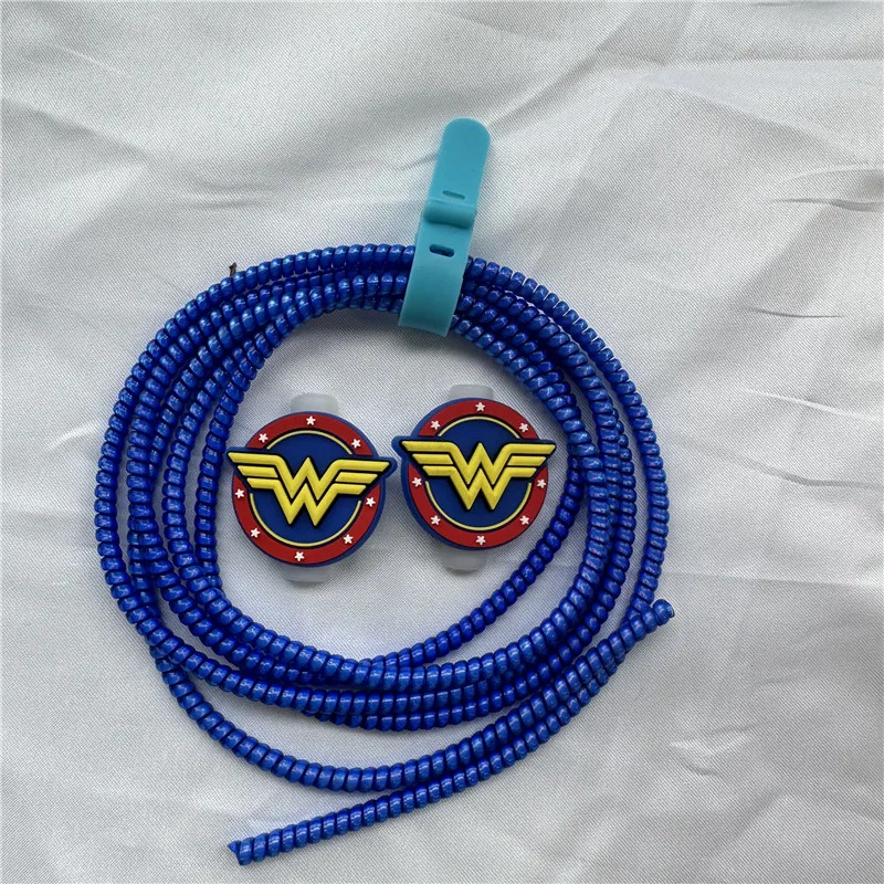 Nuevo Juego de Protector de Cable de cargador USB en espiral de Batman de dibujos animados para iPhone Samsung Huawei Xiaomi Cable de auriculares Cable de protección enrollador