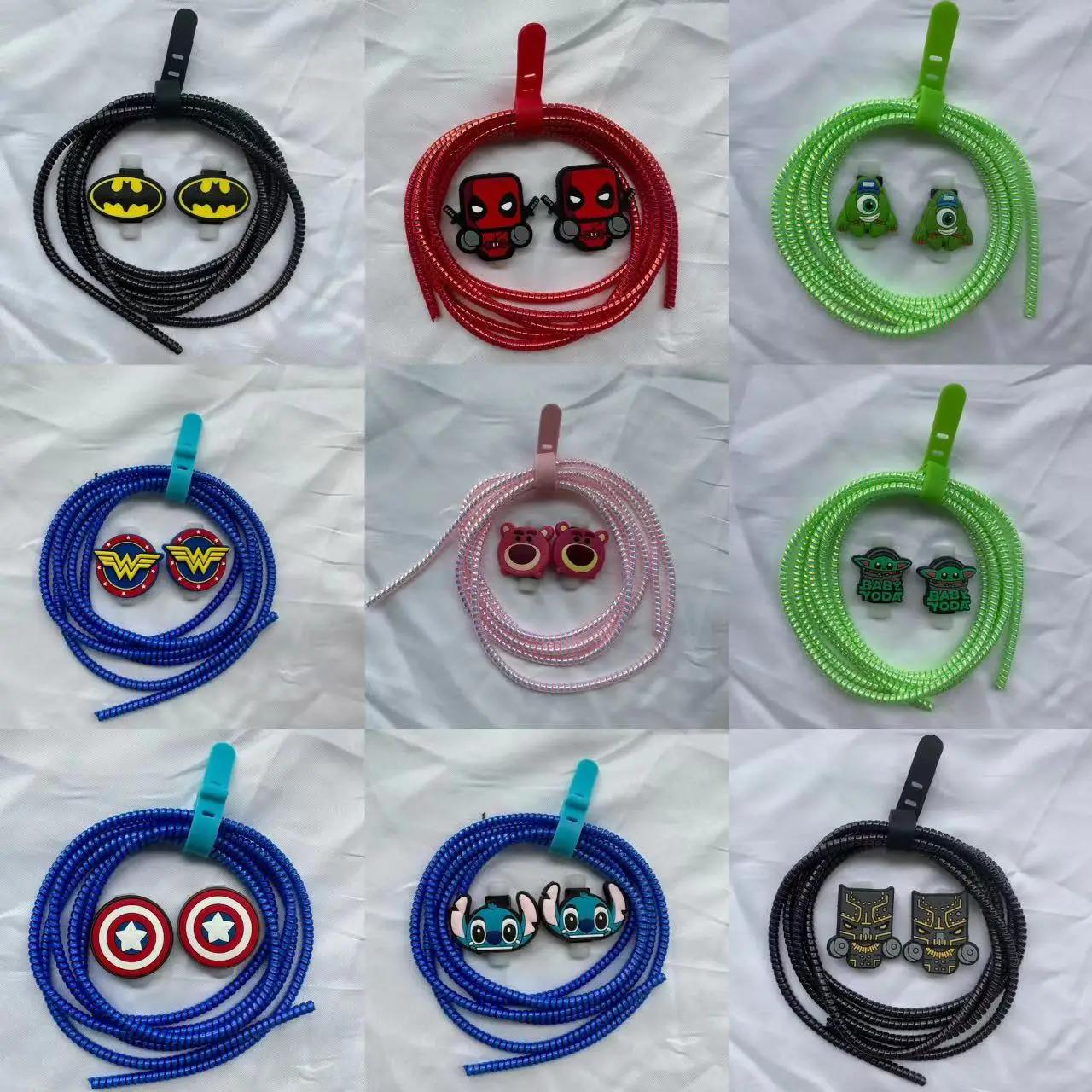 Comprar Nuevo Juego de Protector de Cable de cargador USB en espiral de Batman de dibujos animados para iPhone Samsung Huawei Xiaomi Cable de auriculares Cable de protección enrollador