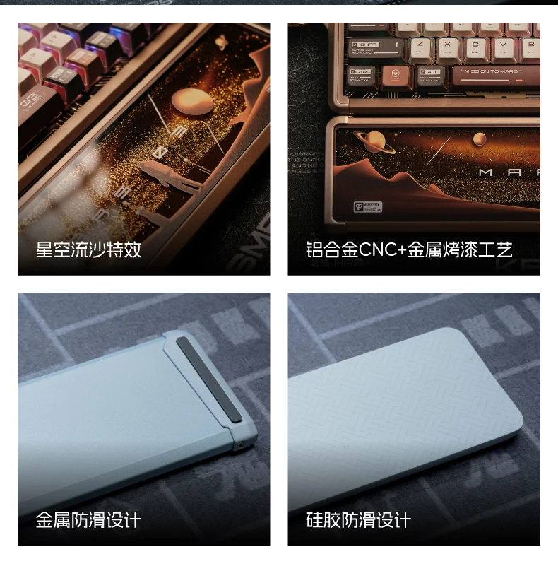 Keysme Mars03 reposamuñecas para teclado, silicona/metal, arena movediza, palma, reposamuñecas de aluminio, soporte para ordenador, regalo para juegos