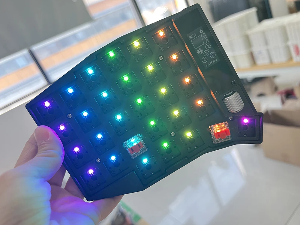 El kit es firmware ZMK, que es idéntico en funcionalidad a la versión MX del maíz disponible en nuestra tienda.