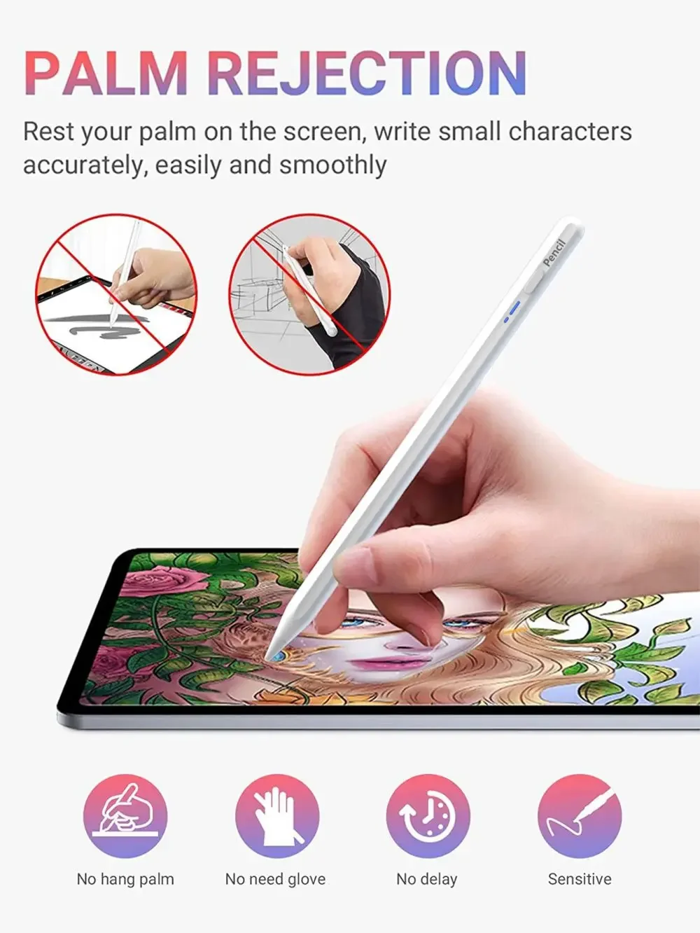 ✍【Sensible a la inclinación y rechazo de la palma】 Diferentes ángulos crean diferentes líneas y sombras en la pantalla.Nuestro iPad Styllu admite con Palm Rejection.Ya no hay guantes, puedes descansar la palma de la mano o los dedos en la pantalla mientras dibujas, dibujas y escribes.