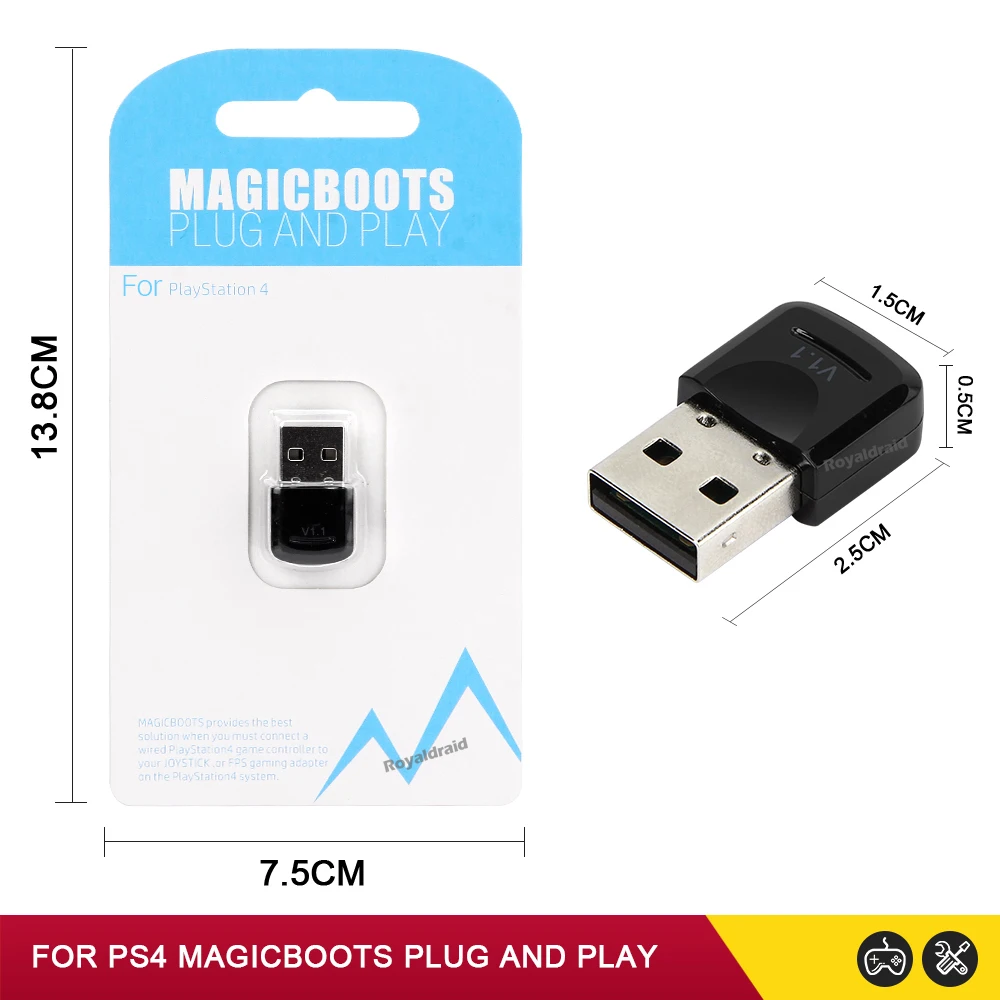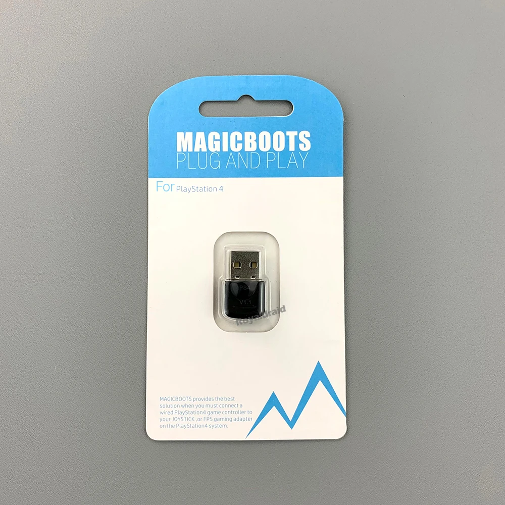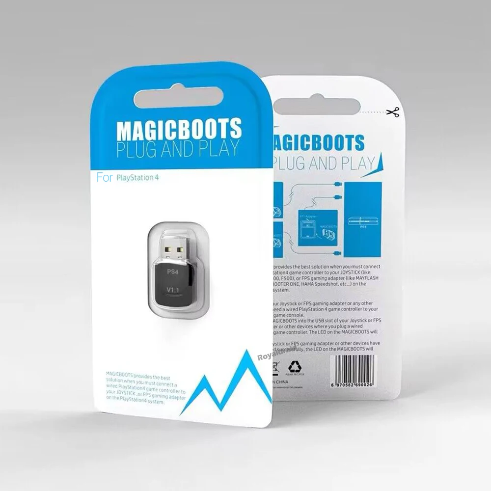 Especificación:1. Conecta su joystick o adaptador de juegos FPS o cualquier otro dispositivo que necesite un controlador de juegos PlayStation 4 con cable a su consola de juegos PlayStation 4.2. Conecta los MAGICBOOTS en la ranura USB de tu Joystick, adaptador de juegos FPS u otros dispositivos donde conecta un controlador de juegos PlayStation 4 con cable.El LED de los MAGICBOOTS estará apagado.3. Una vez que el joystick, el adaptador de juegos FPS u otros dispositivos hayan sido identificados correctamente, el LED de los MAGICBOOTS permanecerá encendido.