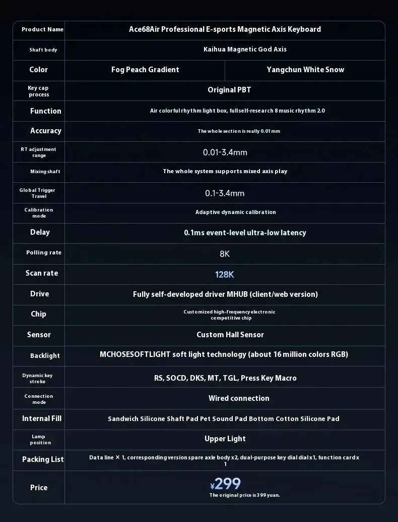 Nuevo MCHOSE ACE68 Air interruptor magnético 8K Teclado mecánico para juegos con cable personalizado RT0.01MM 128K 0,1 MS teclado SOCD RGB TGL PC
