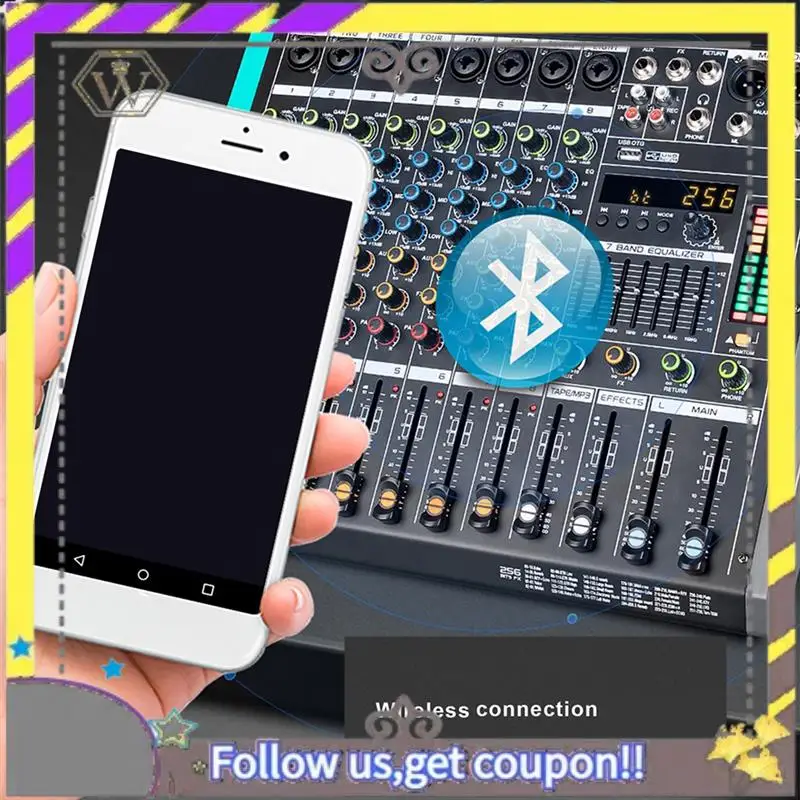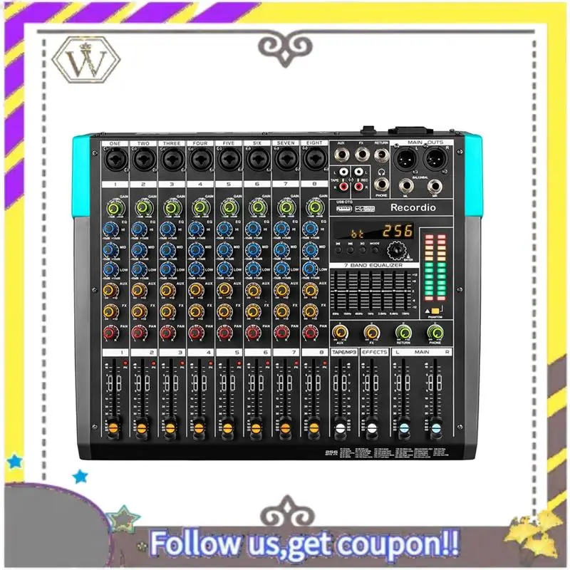 Nuevo mezclador de Audio profesional GAX-PA8, placa de sonido de canal, consola, sistema de escritorio de mezcla, interfaz integrada, efecto de reverberación 256, enchufe europeo [Mezclador de canales]: Perilla de ecualizador independiente para cada canal, con ecualizador de 3 bandas: ajuste de volumen para efectos altos, medios y bajos.