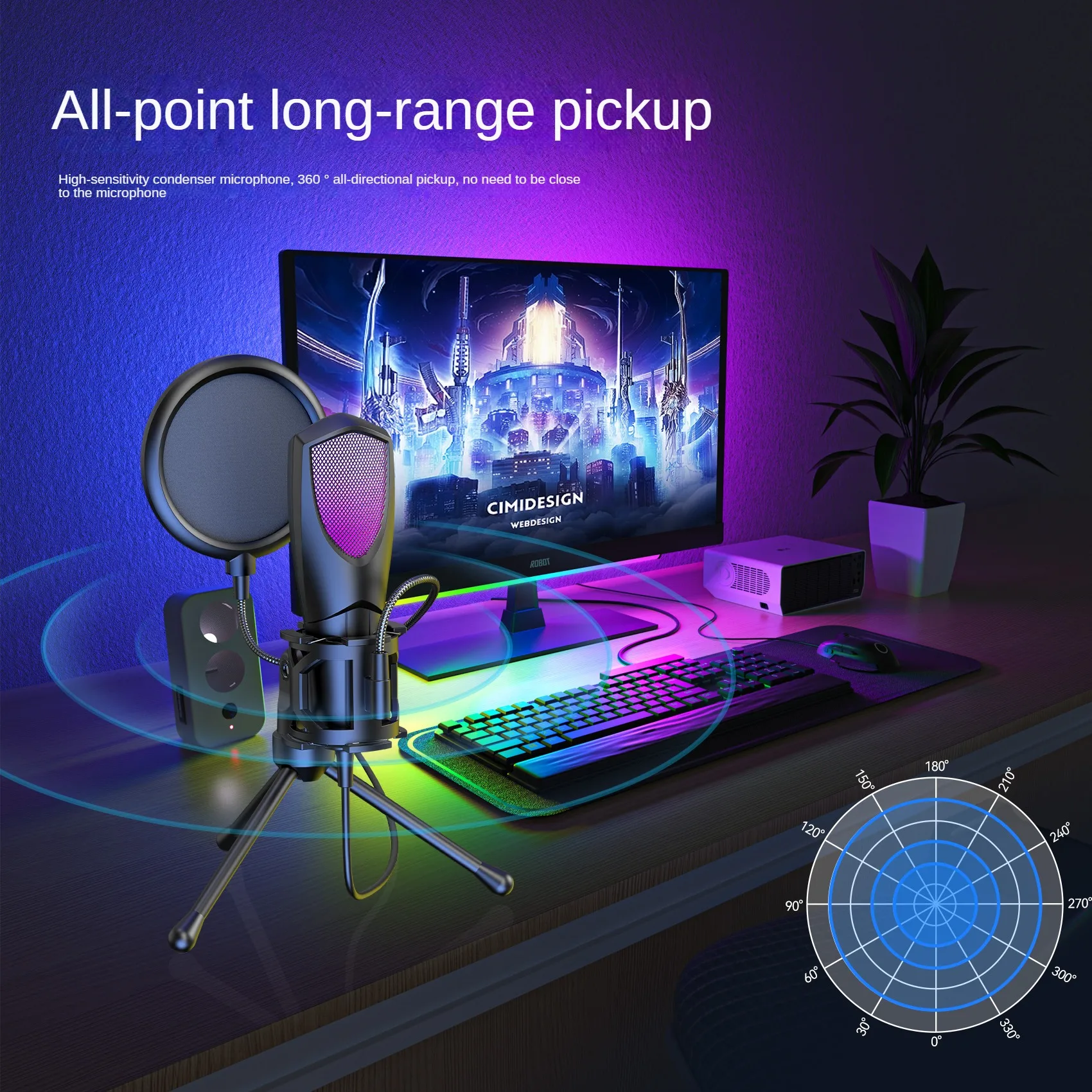 2.Unidad de micrófono de alta calidad, captación de sonido súper clara, perfecta para podcasts, juegos, seguimientos de voz, voces e instrumentos, etc.