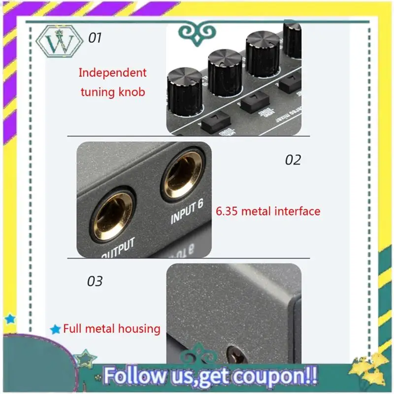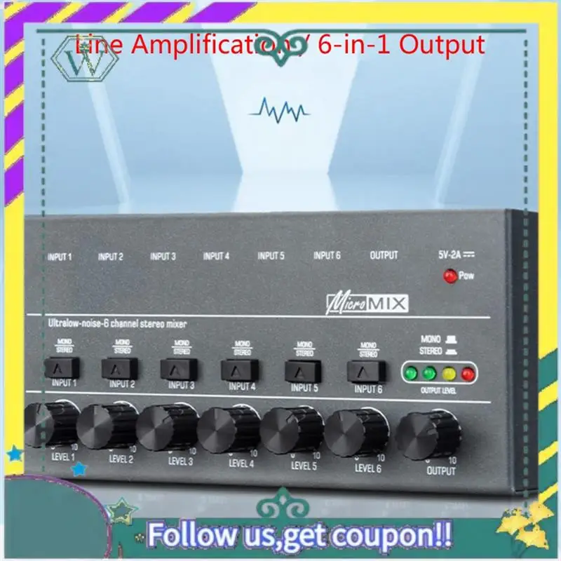 Nuevo Mini mezclador de audio Mezclador de sonido estéreo profesional de 6 canales Mezclador de audio de 6 canales de ruido ultrabajo