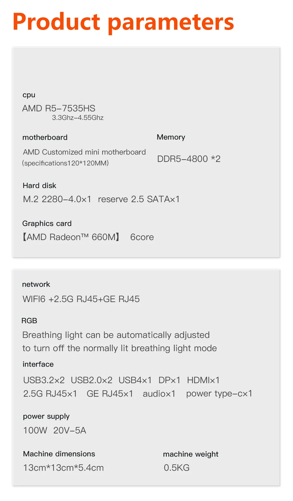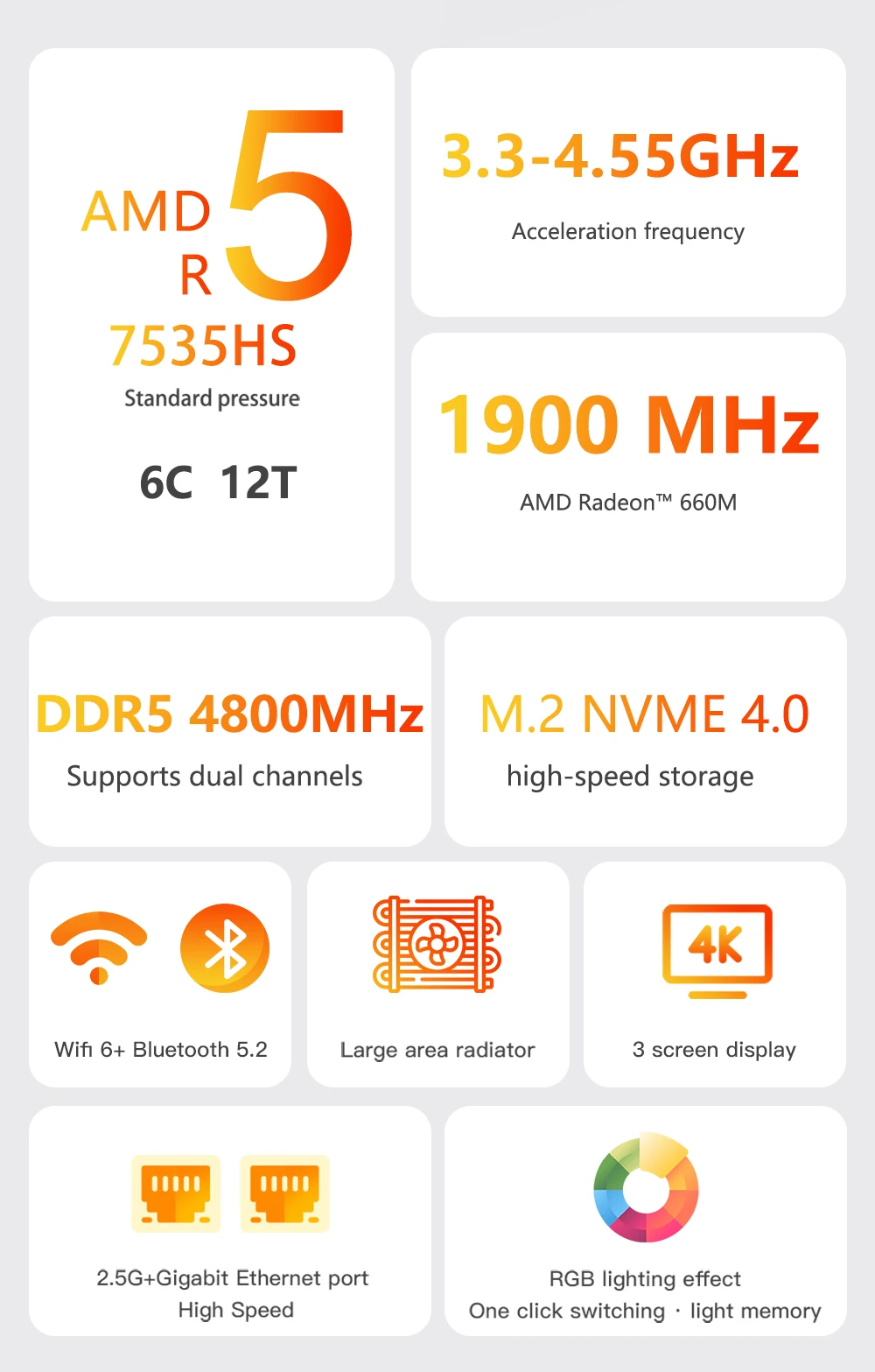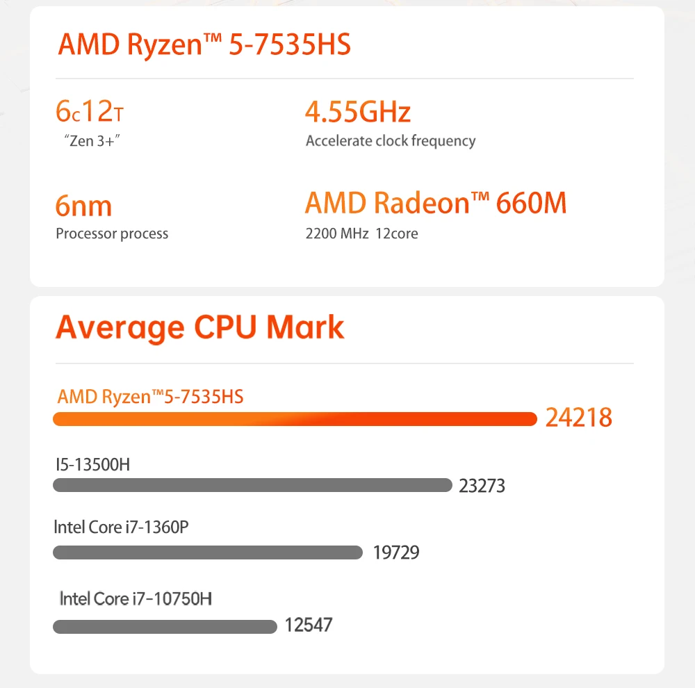New AMD Ryzen 5 7535HS Light MINI PC Windows 11 Pro 8Cores 12Threads DDR5 4800Mhz 256/512GB SSD WIFI6 BT5.2 Desktop pc gamer