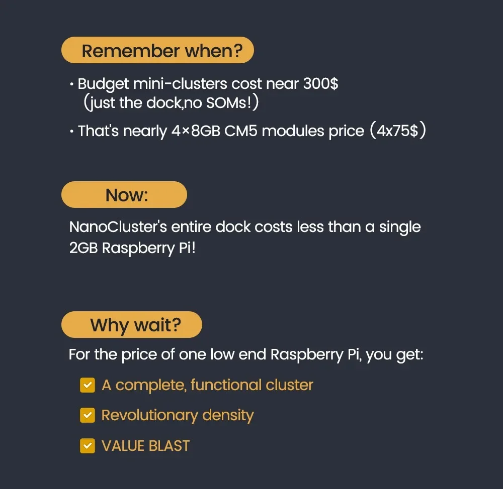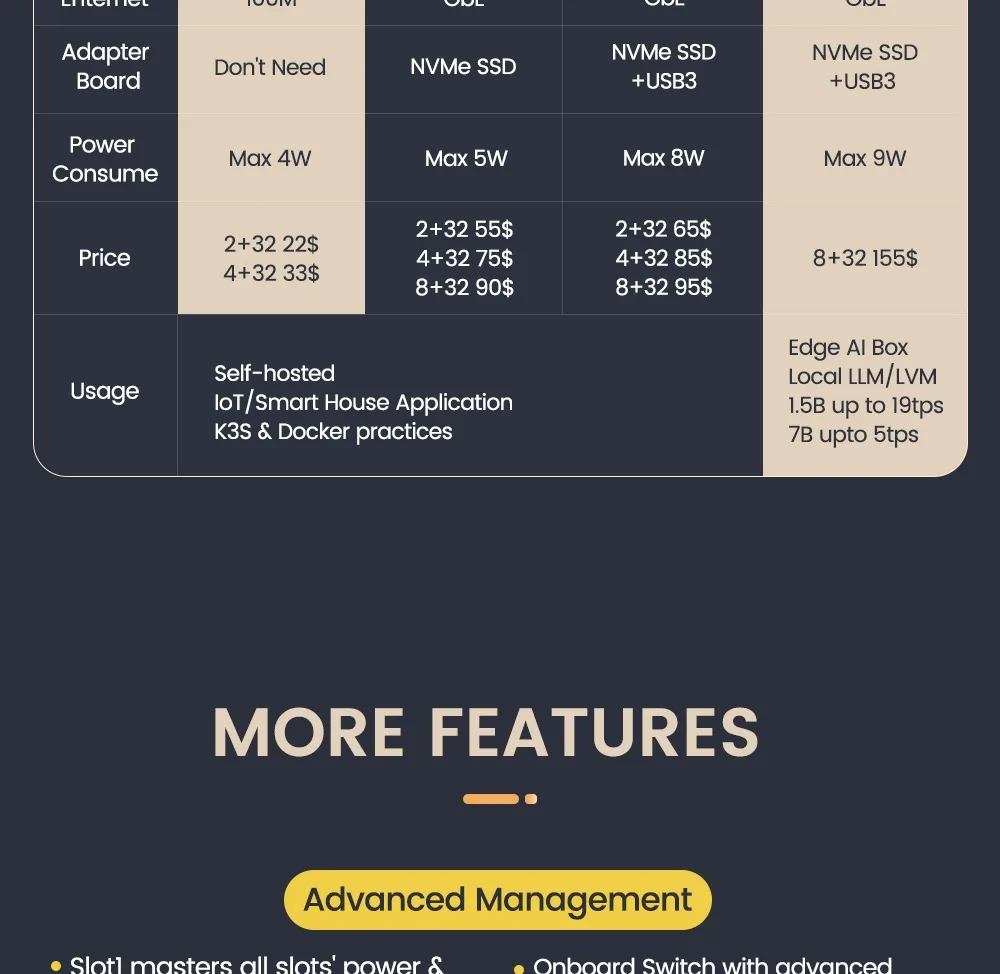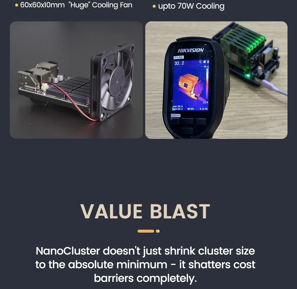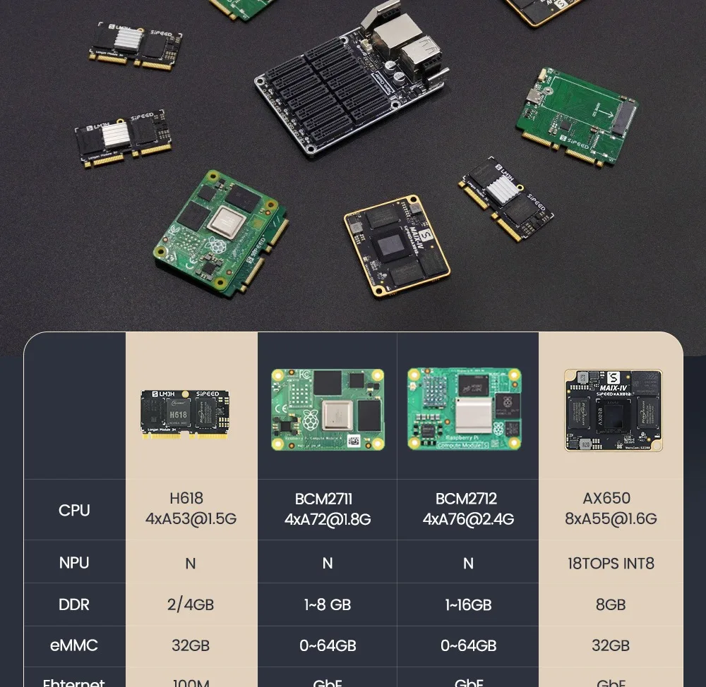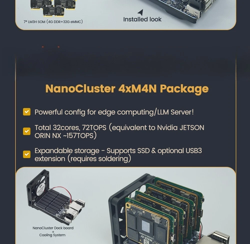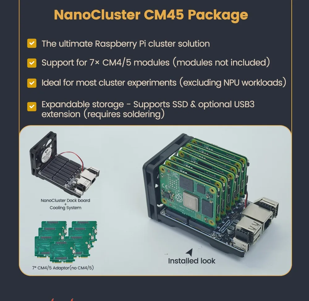 [] NanoCluster es compatible con el módulo Longan 3H de Sipeed (4 × Cortex-A53), M4N (4 × Cortex-A55 + NPU), así como con el módulo de cómputo Raspberry Pi 4 (4 × Cortex-A72) y el módulo de cómputo 5 (4× Cortex-A76).Los usuarios pueden elegir libremente módulos informáticos según las necesidades de rendimiento y el presupuesto, o mezclar y combinar diferentes arquitecturas para crear un grupo informático altamente personalizado y heterogéneo.