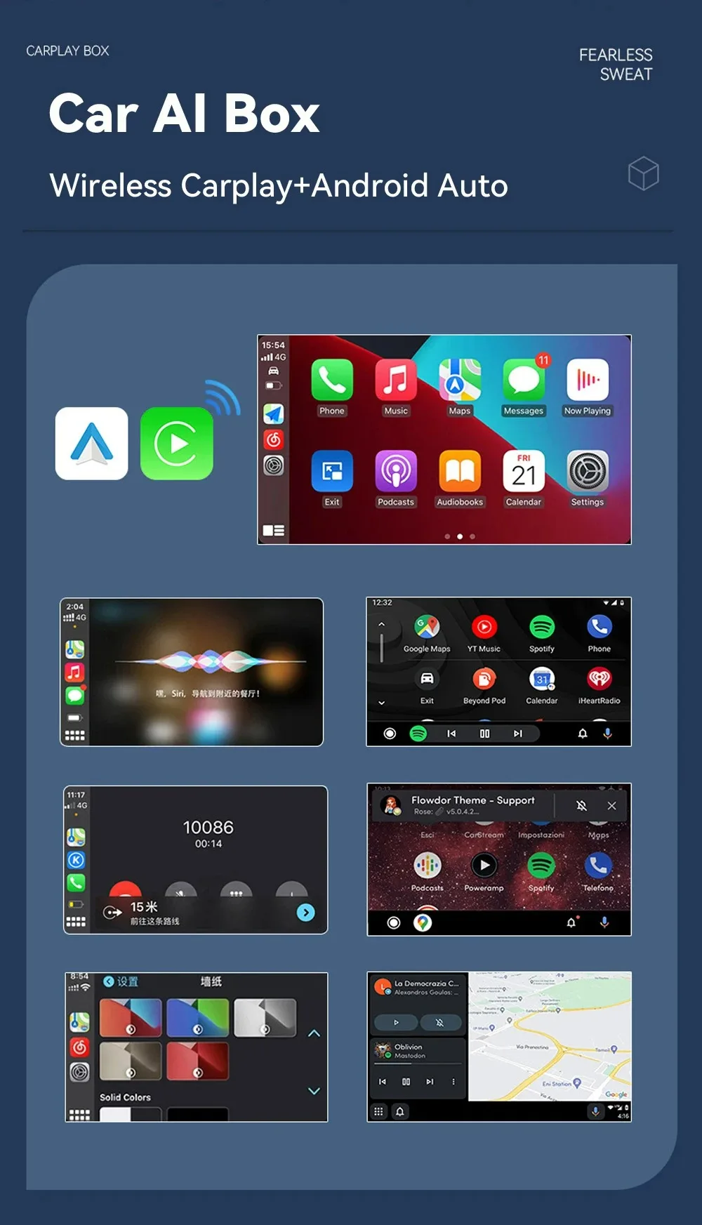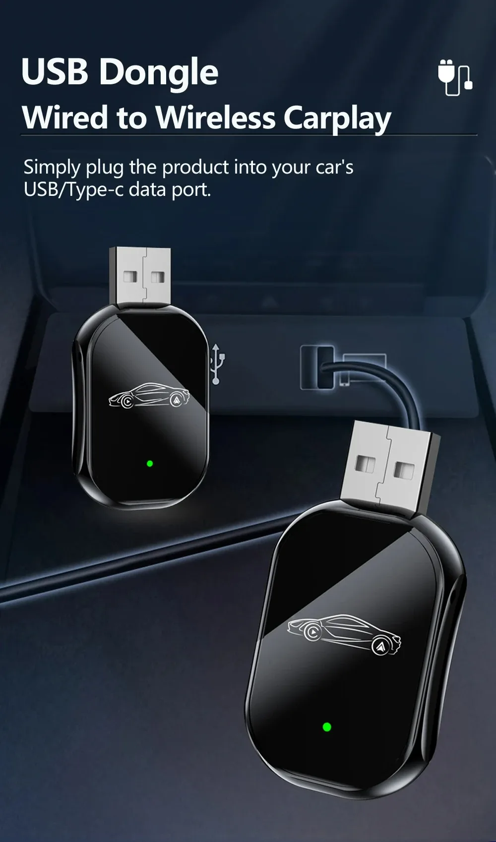 2.CarPlay inalámbrico, convierte CarPlay con cable de fábrica en inalámbrico, admite Siri, navegación GPS, etc.