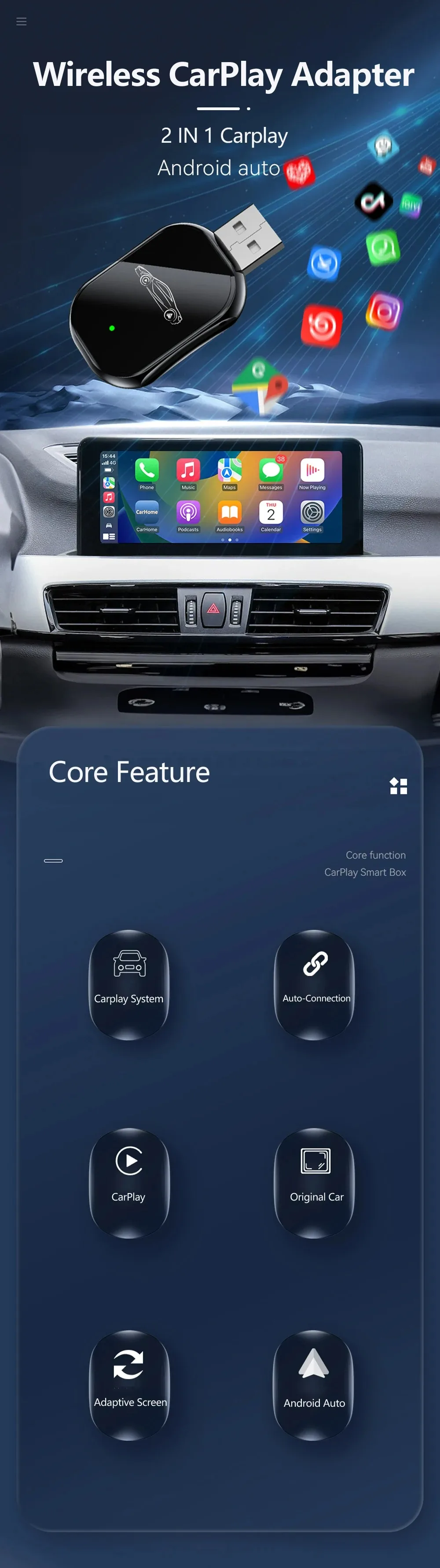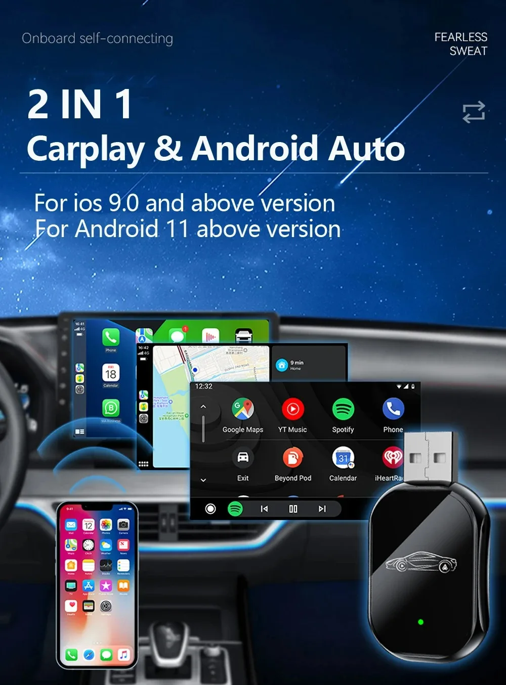1.Posiblemente el adaptador automático CarPlay Android 2 en 1 más pequeño del mundo