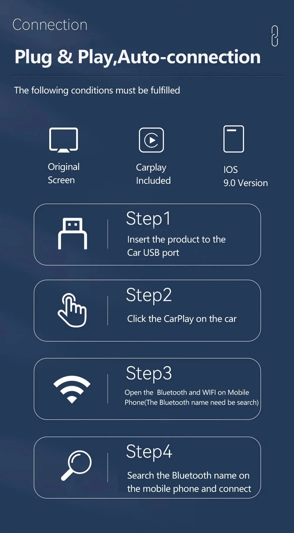 7.Gran compatibilidad.Actualmente compatible con el 99% de los coches del mercado con CarPlay y Android Auto con cable
