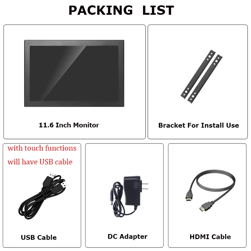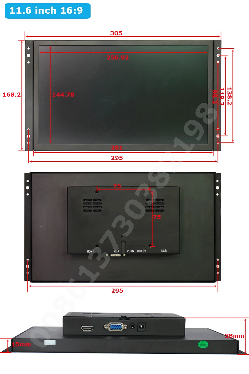 The specifications of 11.6 Inch 16:9 Industrial Monitor