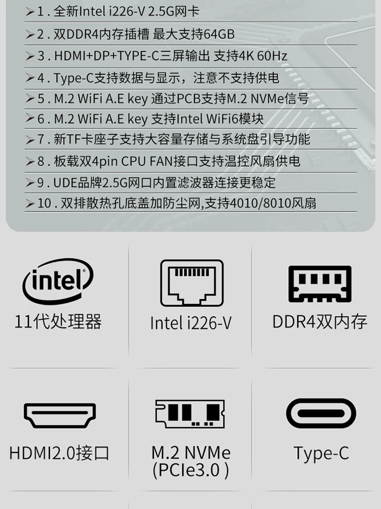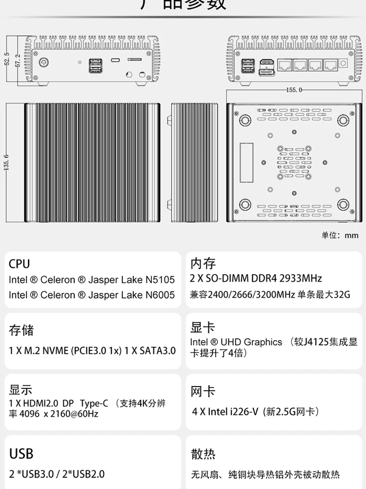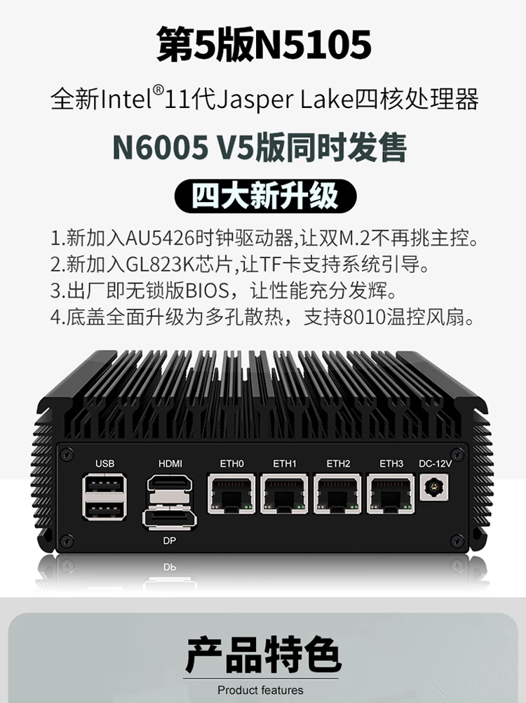 Nuevo N5105 N6005 2,5G Mini enrutador suave Celeron Quad Core 2 * DDR4 NVMe SSD 4 Intel i226 Nics TPM HDMI2.0 DP enrutador