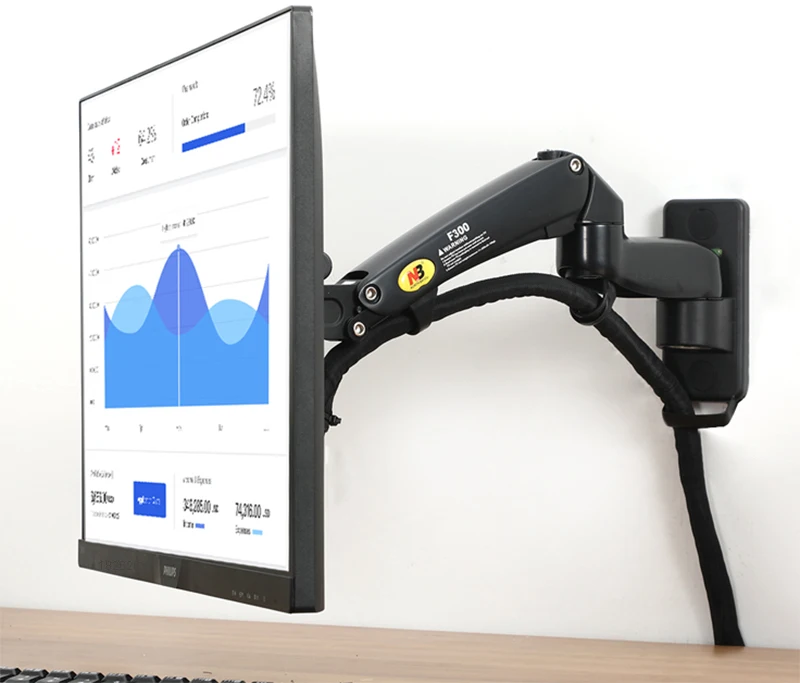 Comprar Nuevo NB F300 F150 Resorte de gas 24-35 pulgadas LED TV Soporte para monitor de montaje en pared Brazo de montaje ergonómico Max. VESA 100*100 mm Carga 3-12 kg
