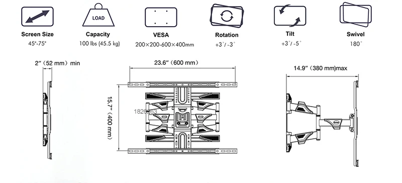 Especificaciones :■ Se adapta a la mayoría de las pantallas de 45 " - 75"