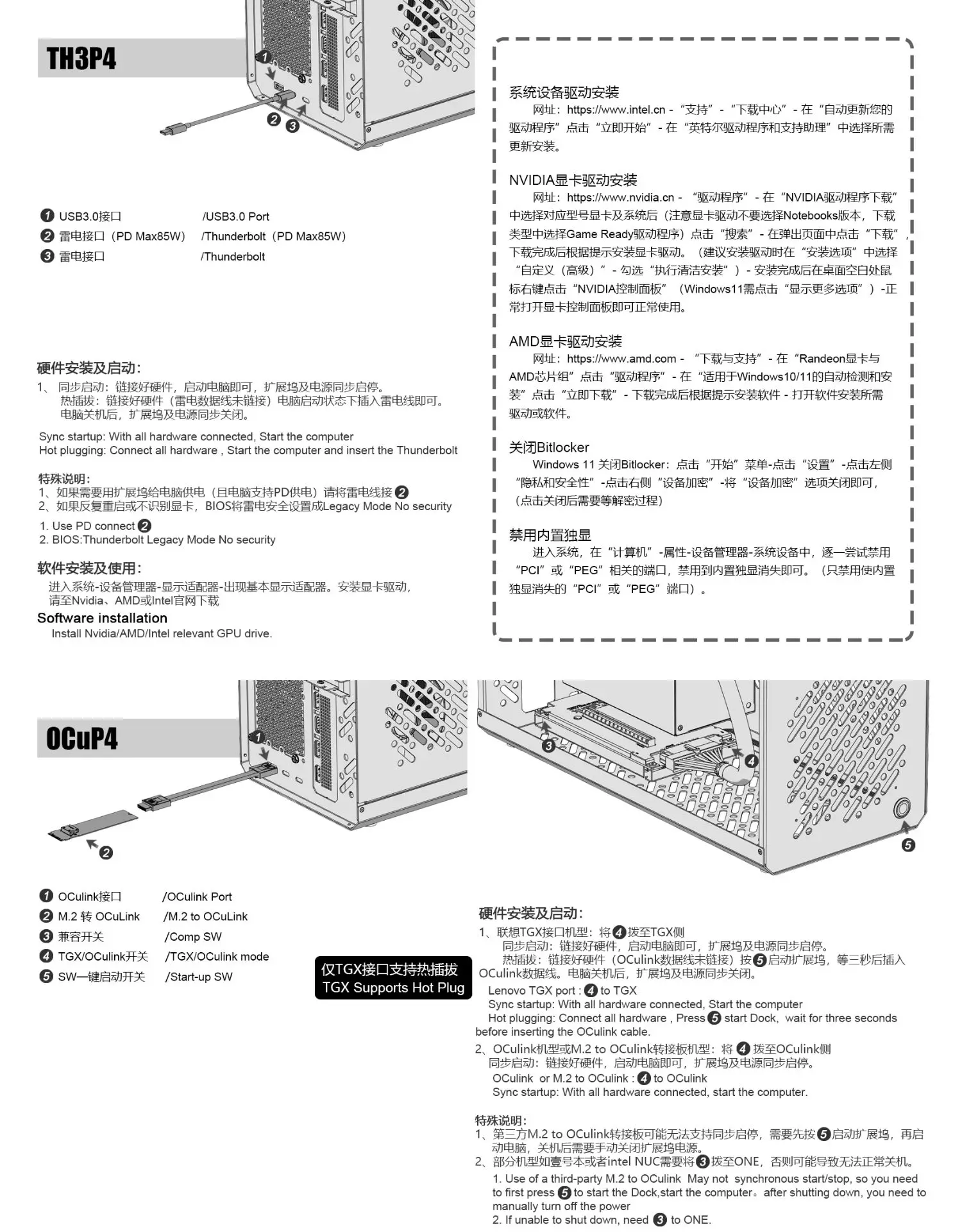 En general todo se ve bien, recibí la base eGPU y el estuche bastante rápido, probados con INNO3D RTX 5070 y Corsair SF7500, encajan perfectamente. Algunas notas sobre la descripción del muelle, muchos textos en chino que deben traducirse al inglés y también falta información sobre cómo se debe realizar la primera instalación de la tarjeta y cómo funciona el intercambio en caliente para Lenovo TGX.