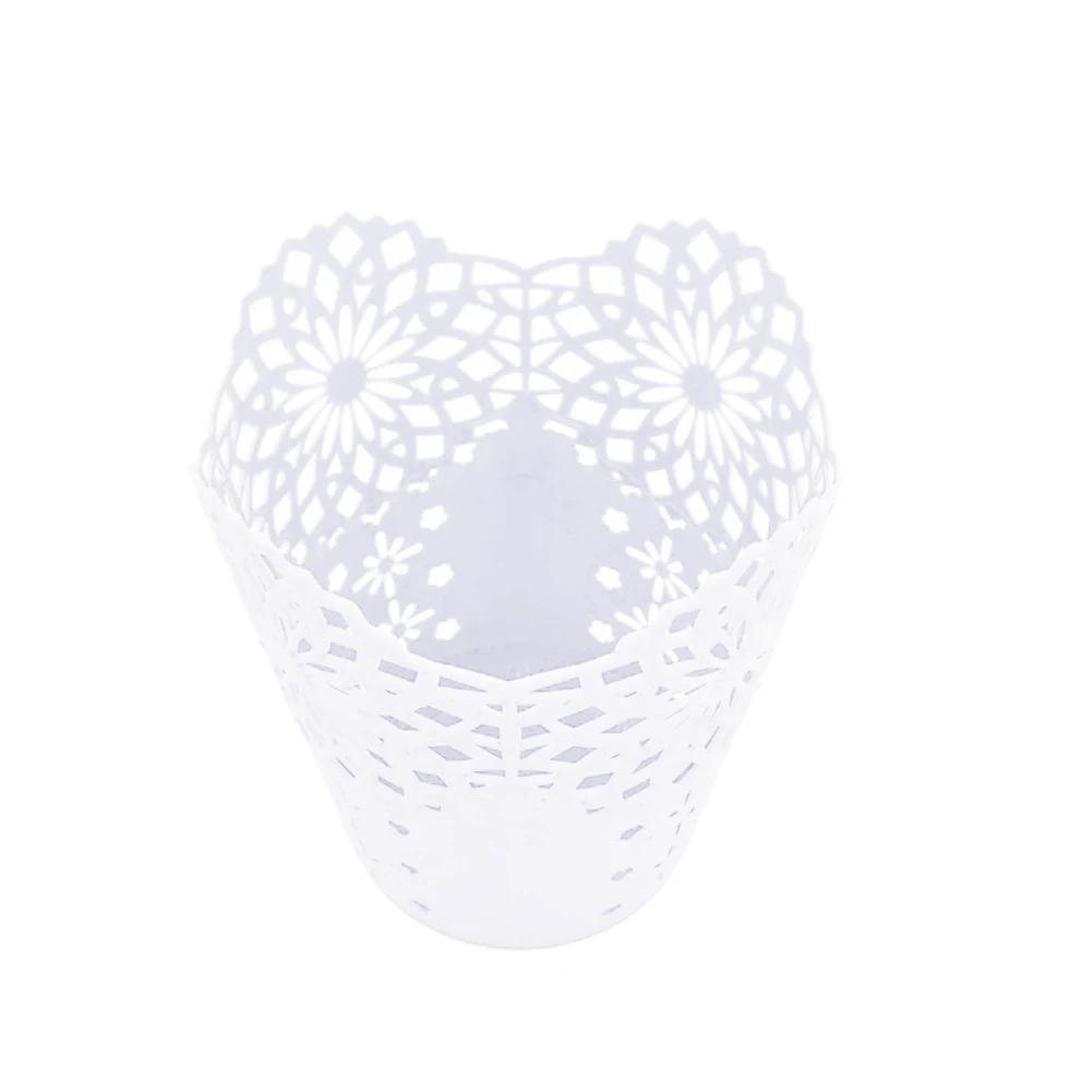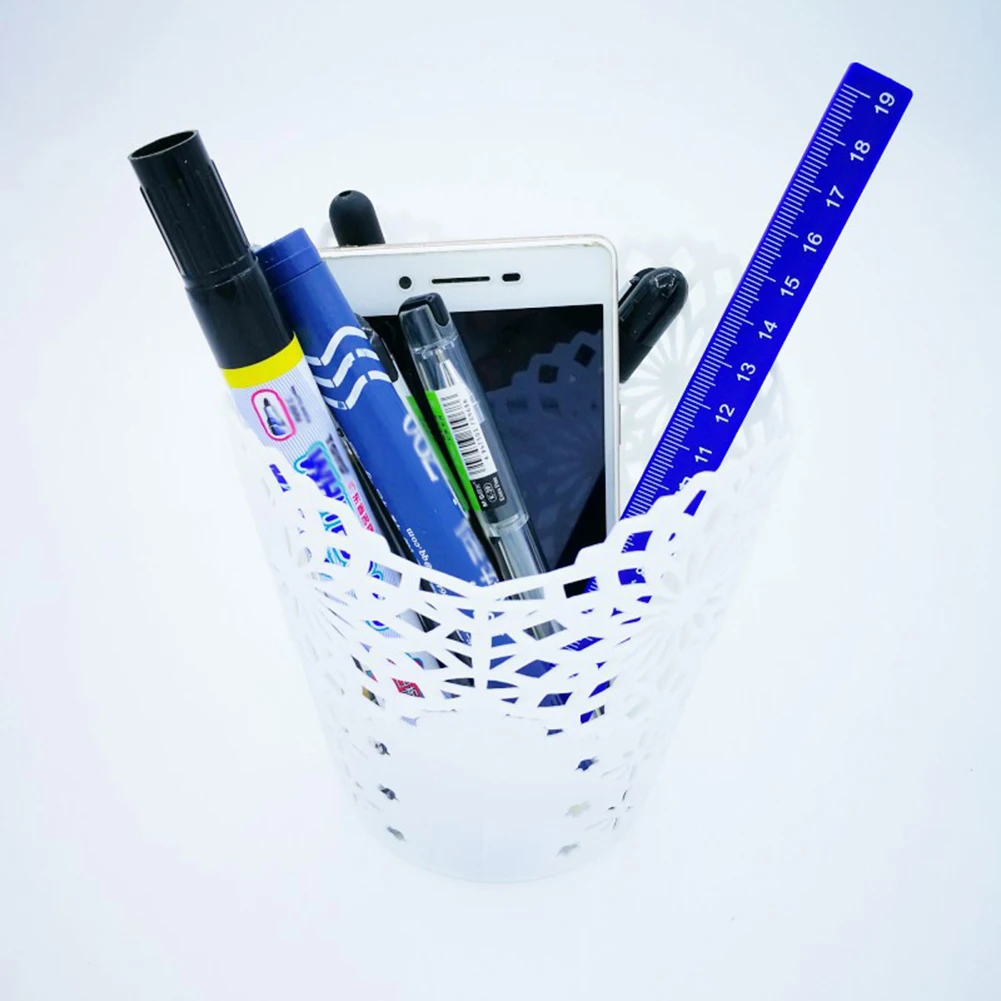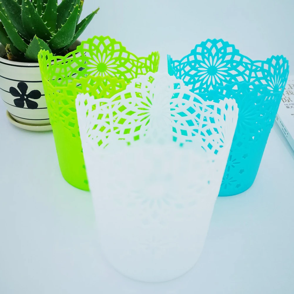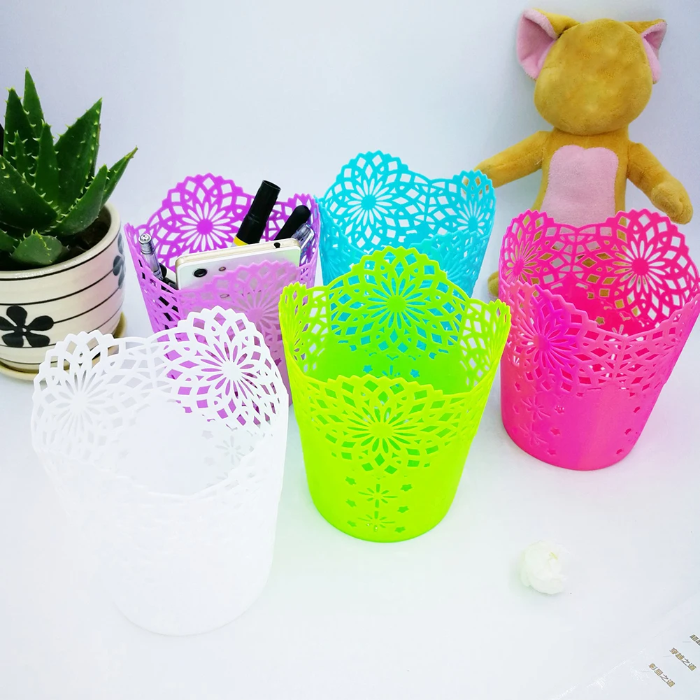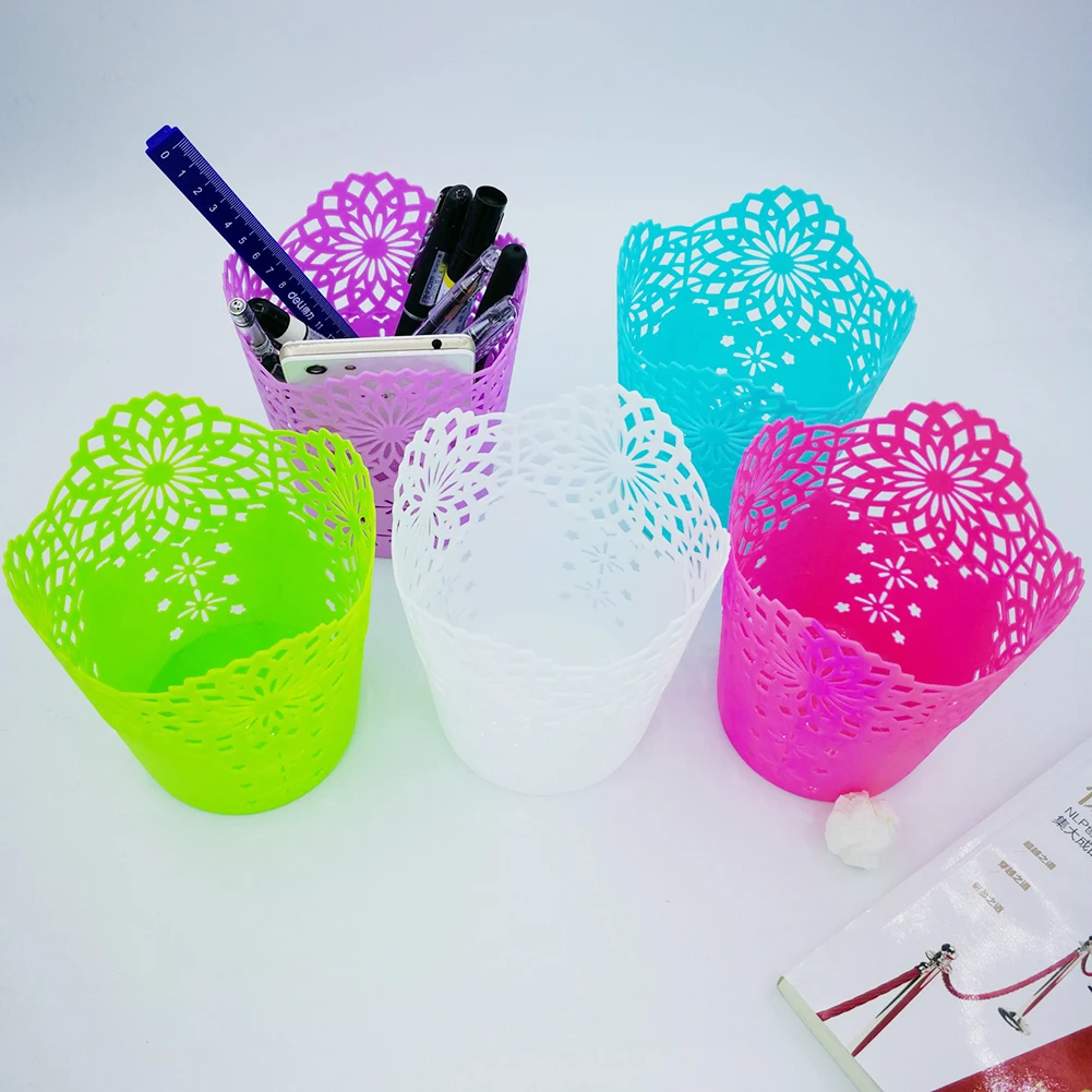 Soporte para bolígrafo de flores huecas de escritorio, caja de cubo, estuche de almacenamiento para lápices y brochas de maquillaje