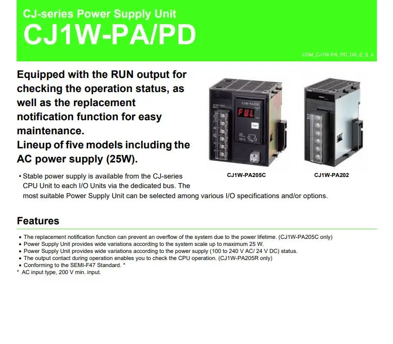 Nuevo y Original OMRON Modo de conmutación Fuente de alimentación CC Módulo de alimentación inteligente CJ1W-PD022 24V CC 19,6W