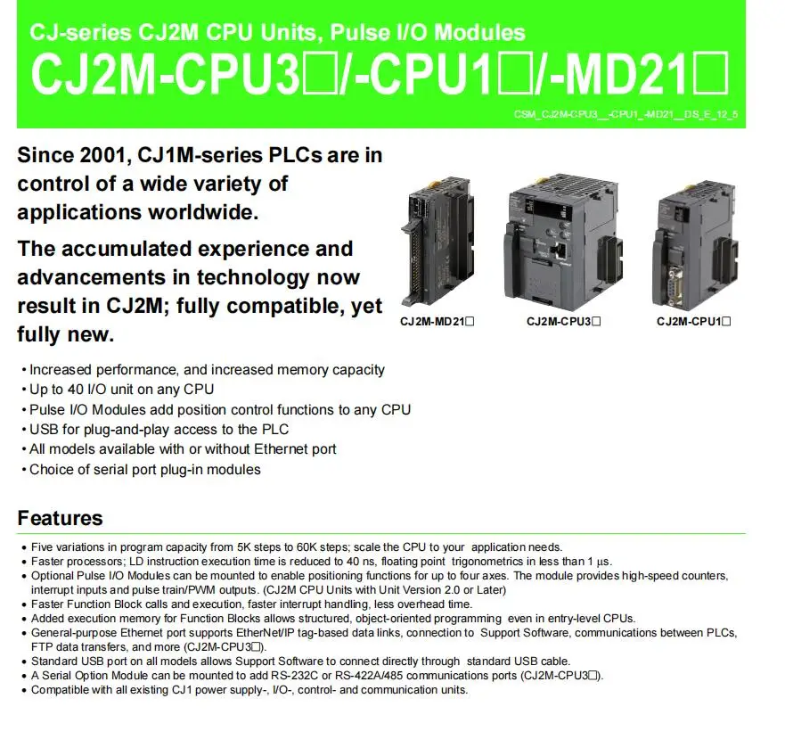 Nueva y Original OMRON Certificación internacional segura y confiable CJ2M-CPU11 CPU12 CPU13 CPU14 CPU15